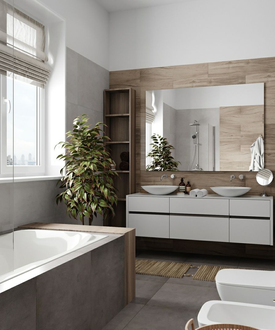 一面足够大的镜子可以使你的空间成倍增加,特别是在浴室里。不过,这种大幅的镜子一定要选择品质好的,尺寸厚度都要精准,否则会严重影响整体效果。一面好镜子,效果会非常强大,您只需要几分钟就能使房间看起来完美无缺。