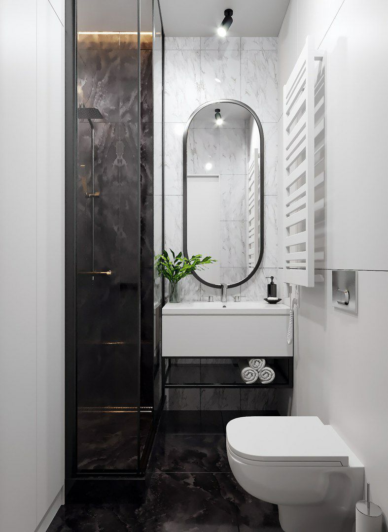 如果你的浴室已经非常狭长,隧道形,就不要再去强调长度了,一定要更多考虑从视觉上去伸展宽度。