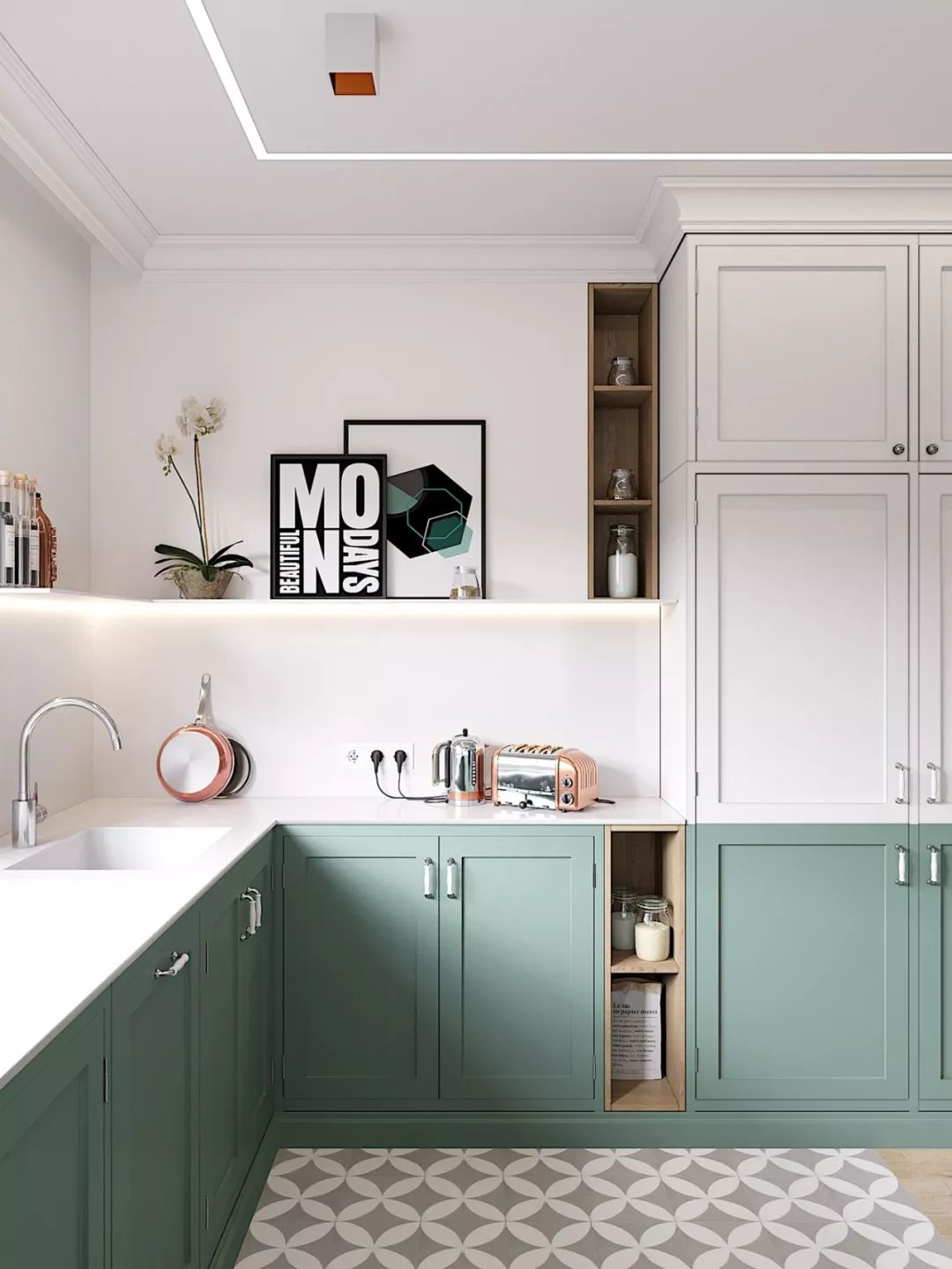 厨房是家的“心脏”,一个用起来顺手,看起来又舒心的厨房设计能让生活更精彩,从灯具到天花板到瓷砖搭配,到厨电选购,整体厨房设计十分讲究,更考验设计师的能力。