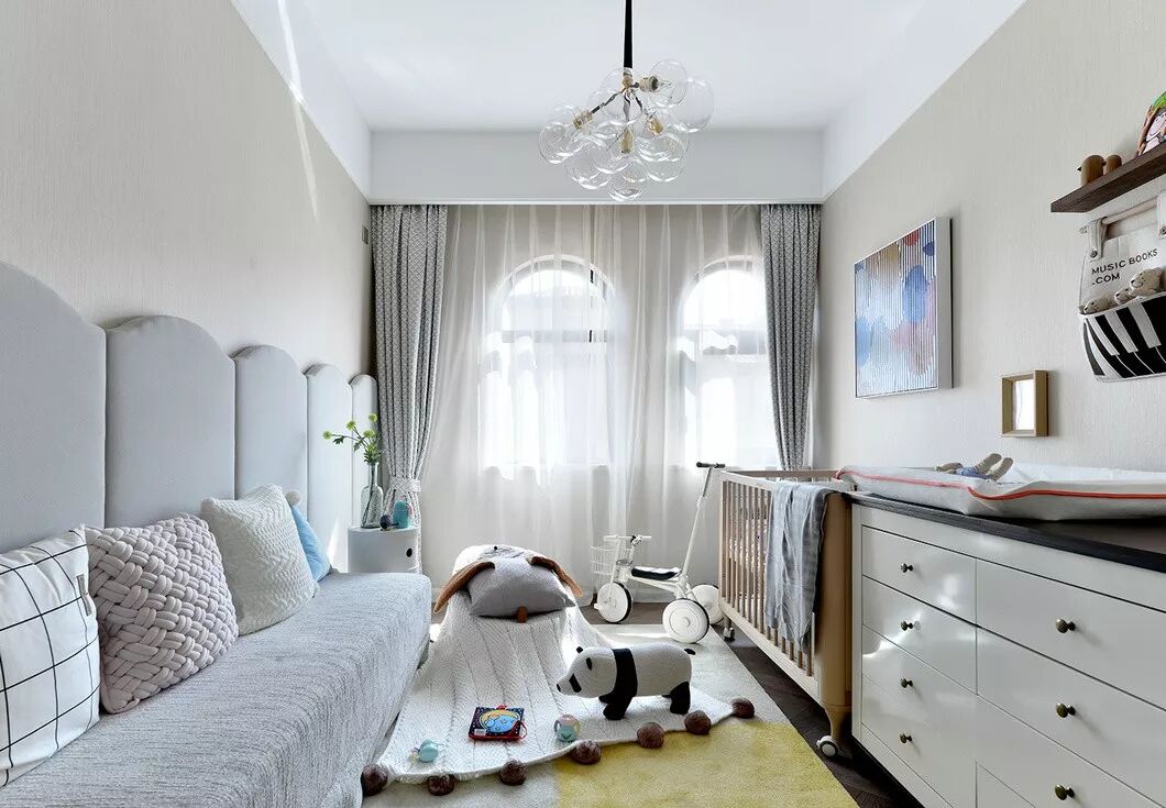 给予尚在襁褓中的小女儿纯白的安全感,一盏泡泡吊灯尽显天真烂漫。