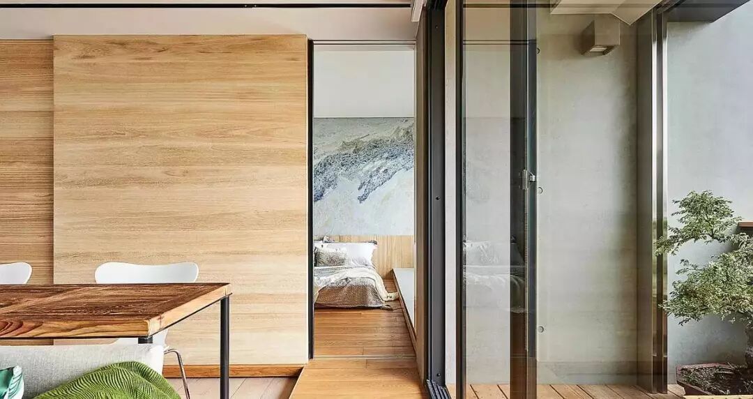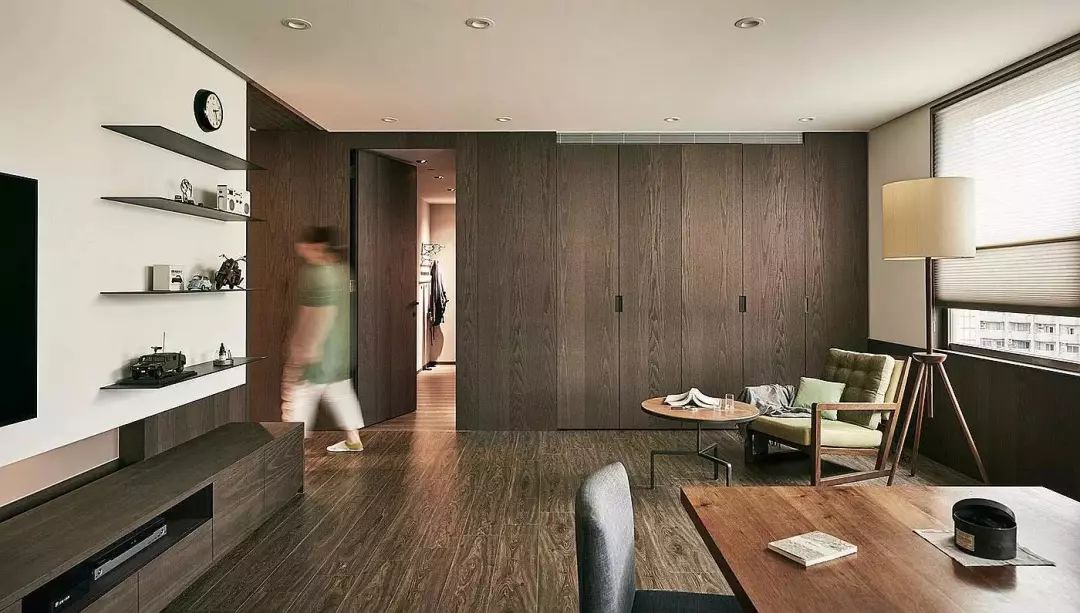 轻盈的推拉式隐形门设计,不但可以划分居室空间,而且尽可能地保留了空间的开阔感,因而通常用在小户型设计中。