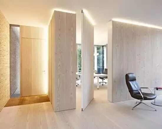 旋转门需要占用的空间较前两者更大,一般用于别墅豪宅等较大的空间里。它兼顾了门、隔断和造型的三重需求。视觉效果和趣味性上也更胜一筹。