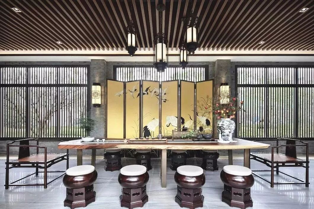 屏风展现了东方古典文化中特有的含蓄之美,与新中式家具相得益彰,显得宁静和谐,是新中式装饰风格中不可分割的一部分。