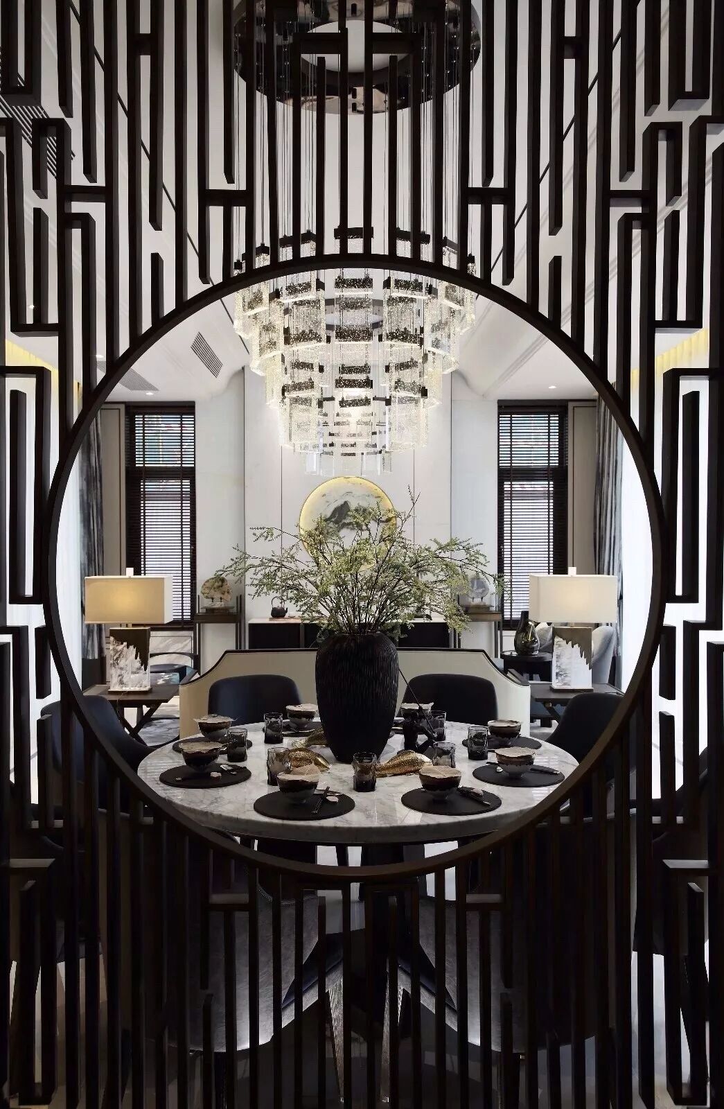 屏风——中国传统中式隔断,是中式设计的典型代表。所谓“屏其风也”,在空间中起到挡风、协调、分隔、美化等作用。
