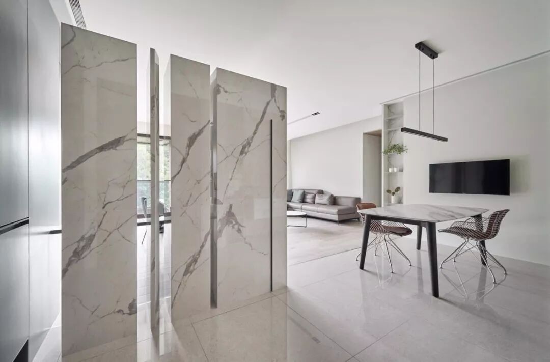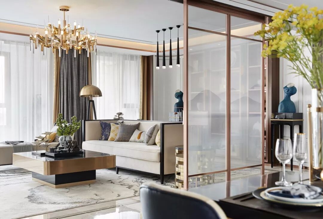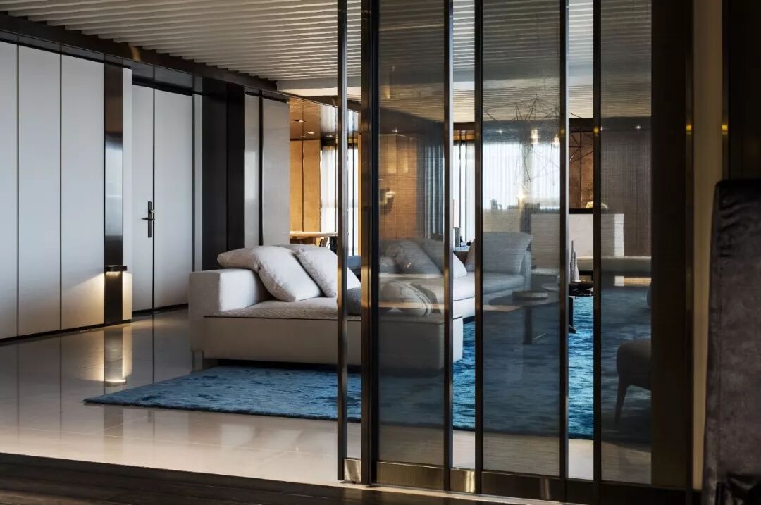 用玻璃门或玻璃墙来做隔断,室内的透光度十分高,在视觉上也显得室内空间更大,在很多现代风格的设计中被运用。