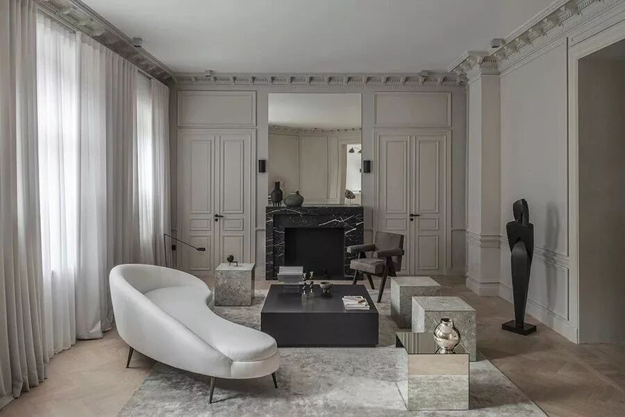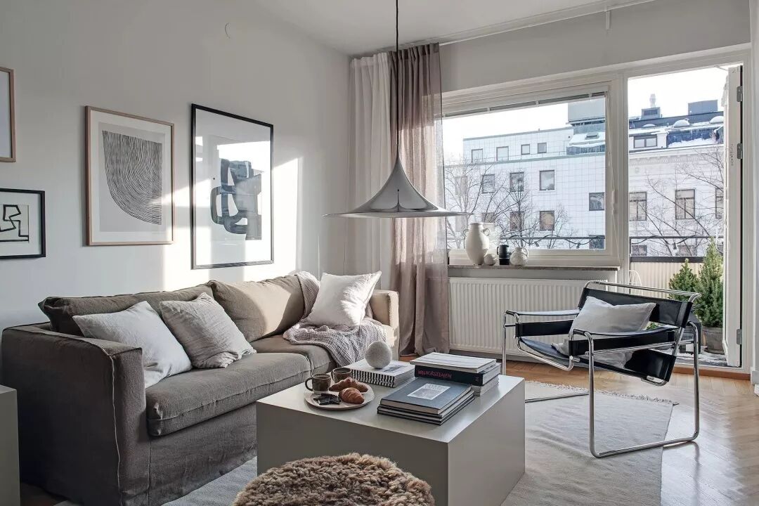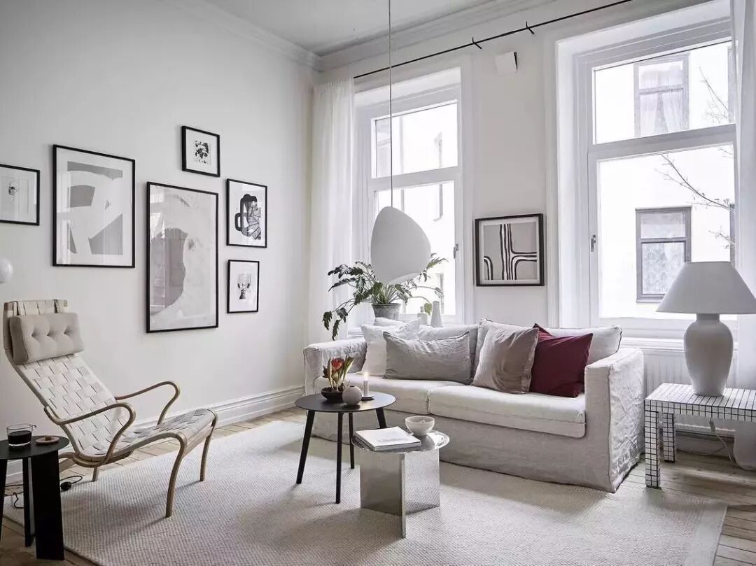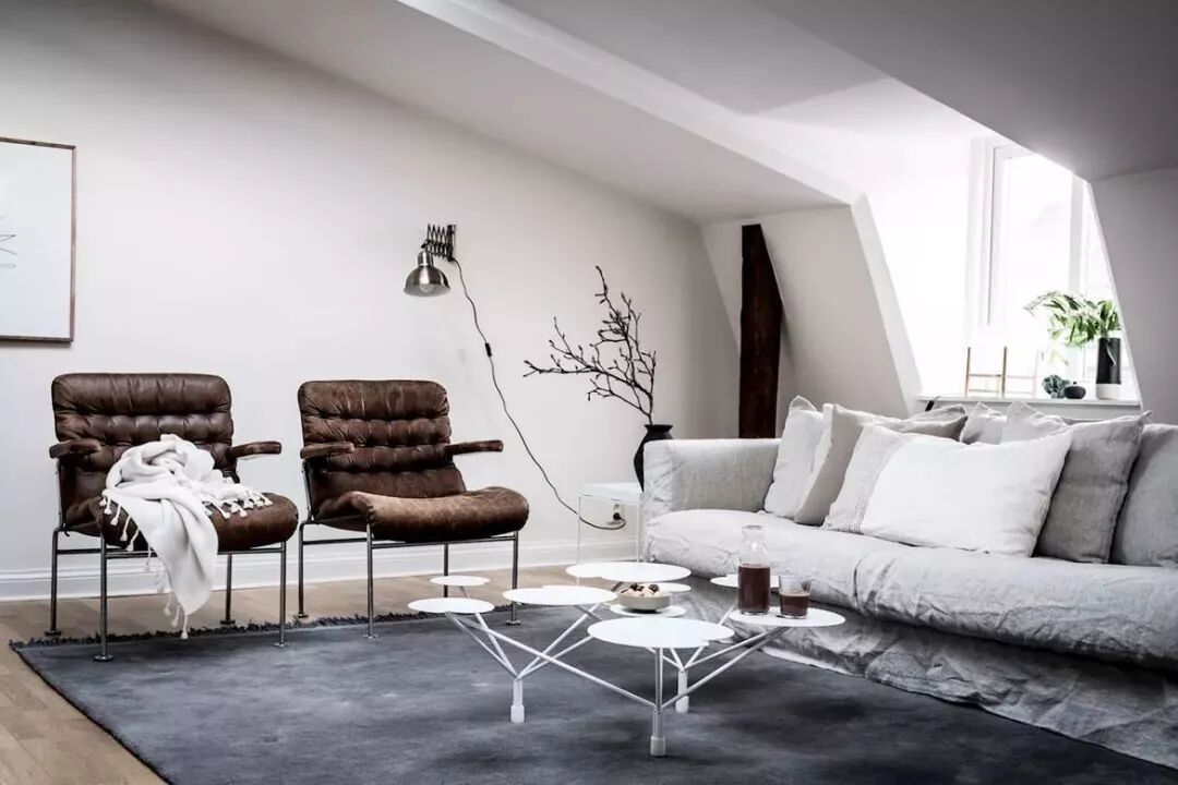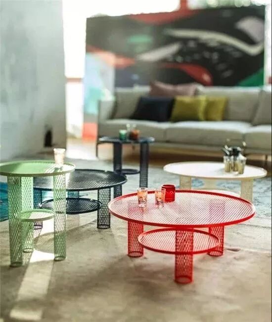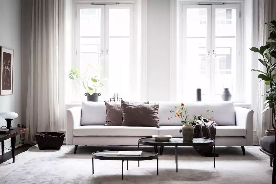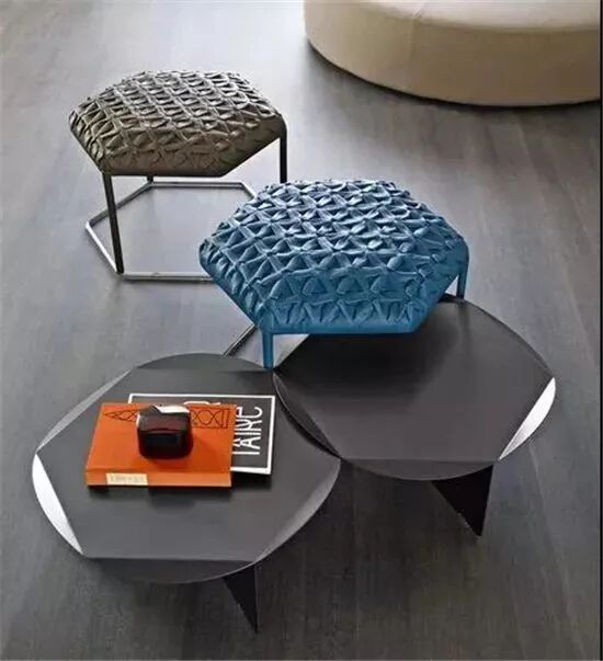 在现代风格中常见的组合搭配,2-3个茶几组合,在组合、款式、尺寸上稍微变化,高、低错层更有层次感,就能打破大茶几在空间中的沉闷感。