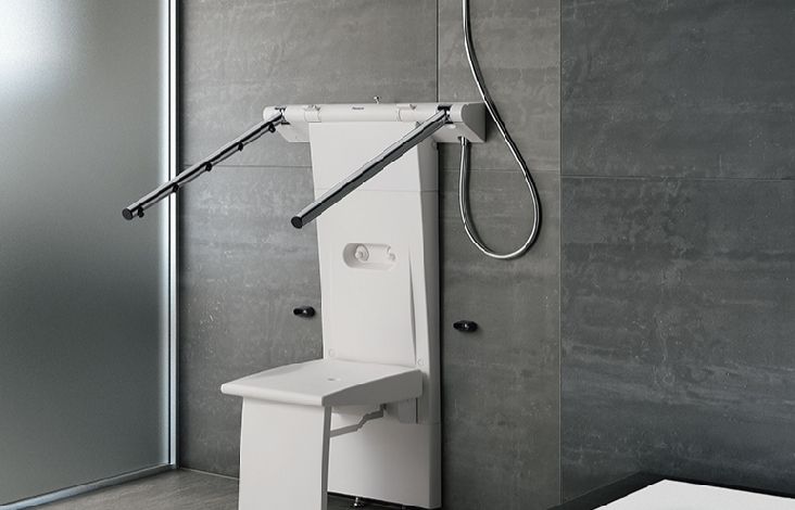 ▲有条件的话购置一款坐式淋浴器,没有条件在浴室放一张坐凳也可以。