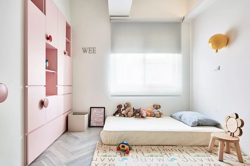 这样布置的可变动性很大,在地上放一张床垫就可以解决偶尔有亲戚朋友来家里留宿的问题,同时还非常适用于儿童房,既留出了弹性空间,又节省预算;