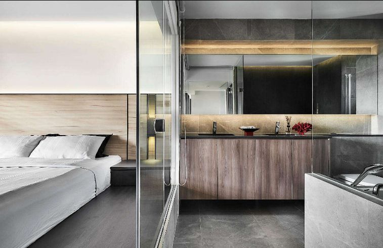 巧妙容纳了洗手池、淋浴区甚至还有浴缸