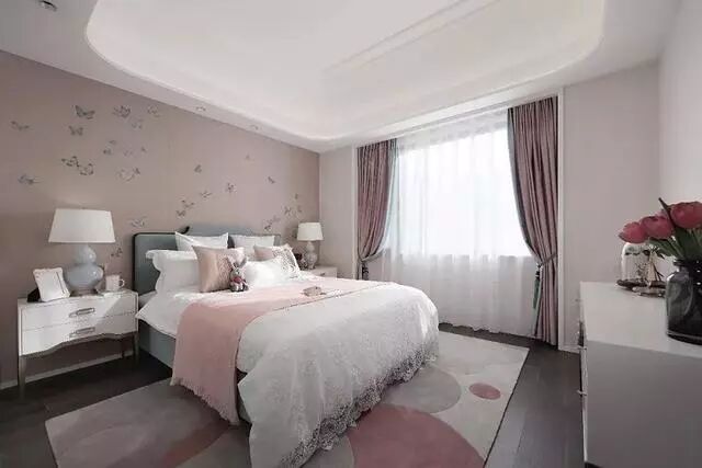 粉色与白色的化学碰撞,激发深层感官体验。天花板上流畅的弧形线条,纯粹的空间结构,以及形态各异、淡粉精致的丹顶鹤小装饰等细节设计,让儿童房显得可爱又俏皮,灵动又活泼,生动雀跃,让人心生欢喜。