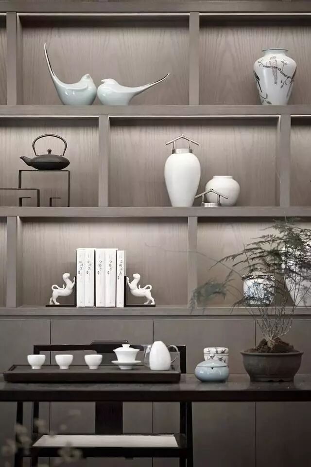 充满设计感的茶壶茶杯、尽显艺术质感的小装饰品,将书房及茶室的清净氛围展现得淋漓尽致。