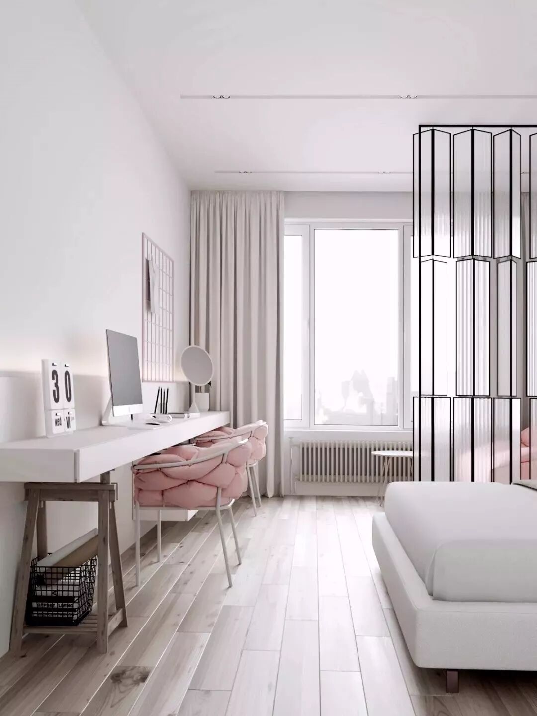 当脏粉色注入清浅的灰空间,娇俏的色泽配搭着冷静的色调,极具视觉张力,以同样浪漫的紫色作为点缀,增加柔美气息。拼凑在一起竟然奢侈有度,冷暖相宜。