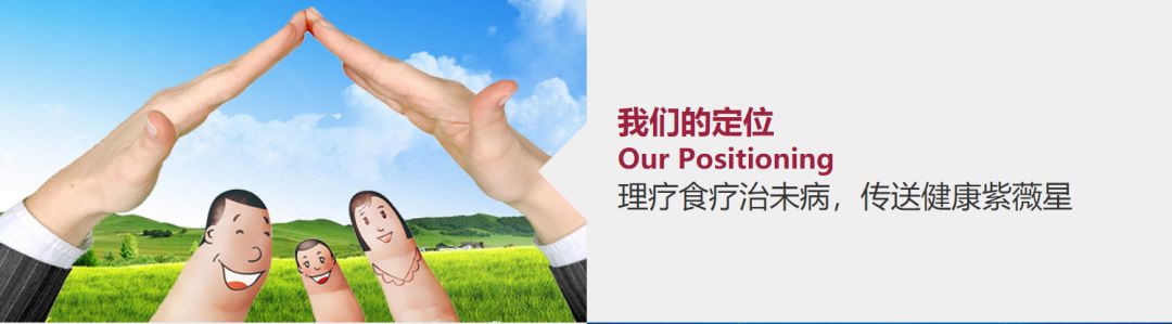 公司以“理疗食疗治未病,传送健康紫薇星”为健康文化核心,构建“预防、保健、养生、康复、治疗”五位一体的健康服务体系,成为我国治未病健康工程的领跑者、理疗食疗的倡导者和力行者。