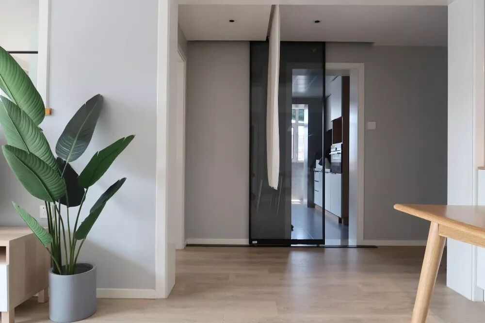 内嵌式推拉门的效果是将滑轮和门轴隐藏起来,视觉效果更加美观。