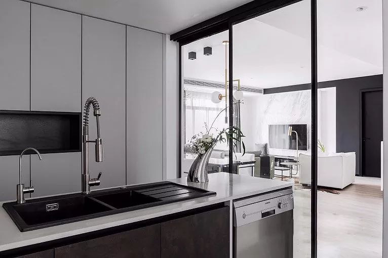 多扇推拉式设计更可以作为灵活的隔断,与传统的门相比,推拉门的灵活性更强。它可以让空间看起来既时尚又轻盈,还能凸显一定的层次感,因而成为空间弹性分割的最佳选择。