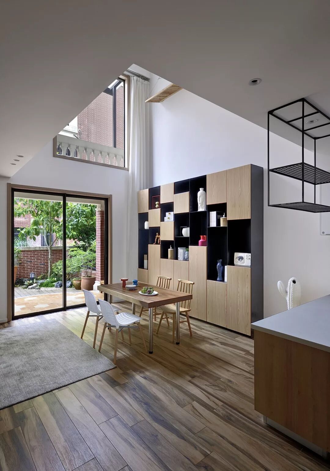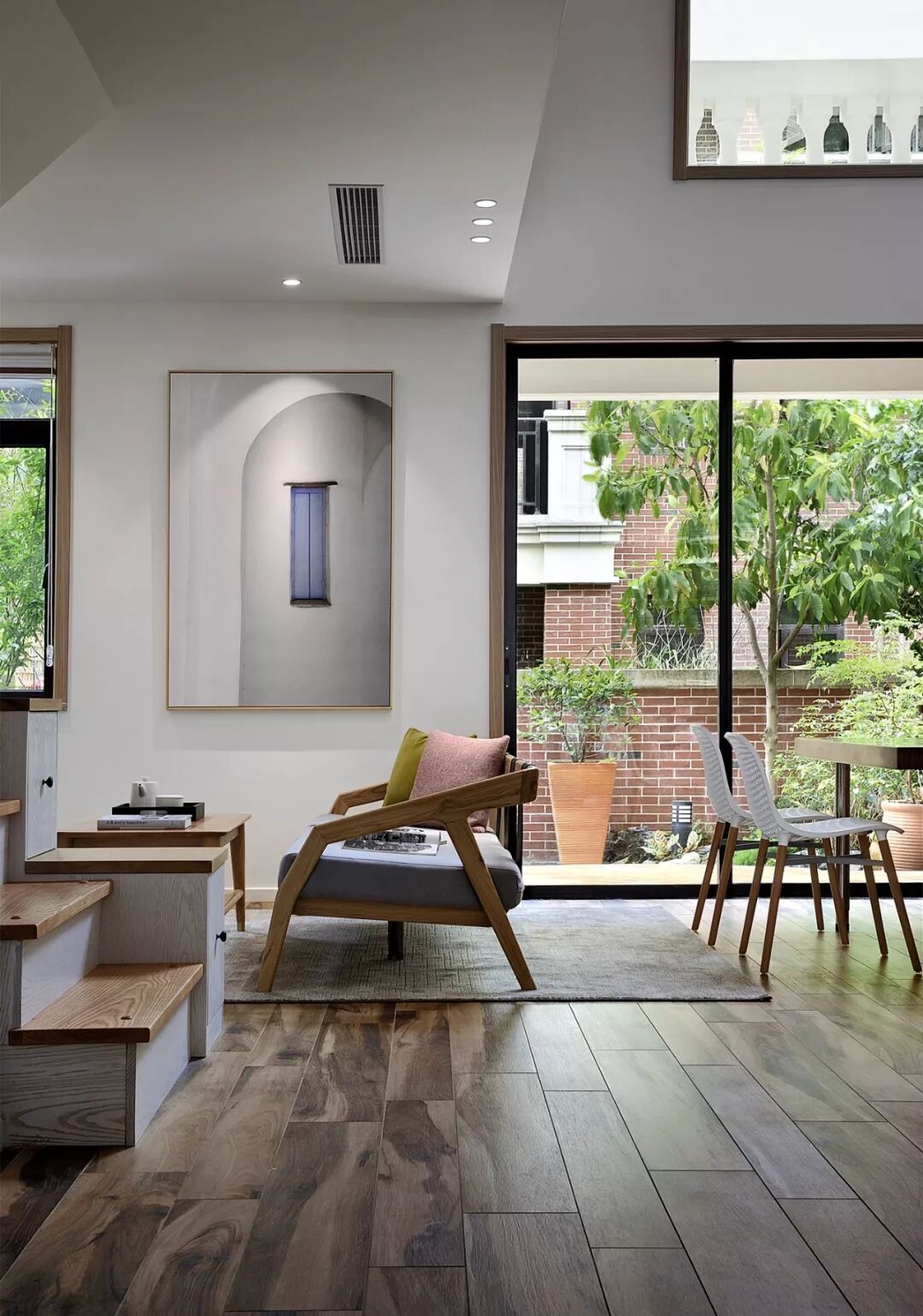 餐厅和客厅的窗外就是一个绿意盎然的小院,在朗朗天光下,若有似无地间散发着草木清香,让人不禁想起王昌吉的感慨“木性慈仁,体顺融金。还元祖性,造化幽深。”