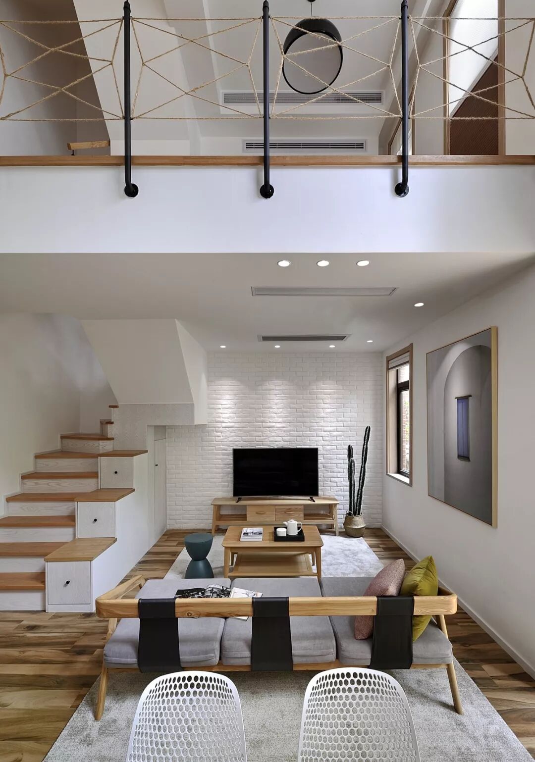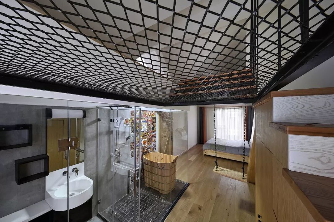 空间使用者的生活方式和生活理念,是设计师进行空间设计的第一依据。本案业主崇尚自然质朴的生活方式,设计师去伪存真,通过钢、铁、麻绳和大量原木的使用,使空间呈现出没有伪装的质感和色泽,带来了一份君子般的坦荡和洒脱。