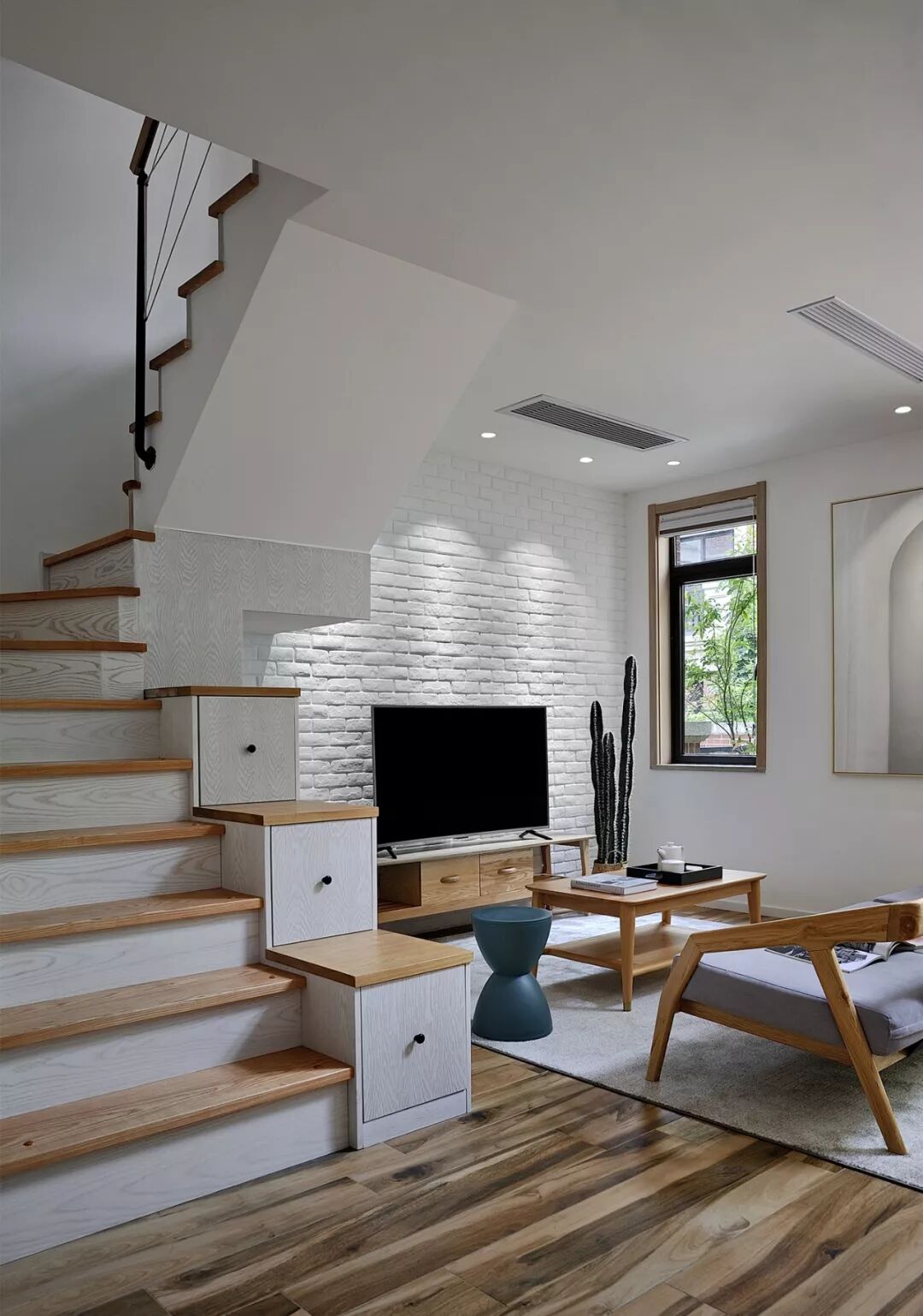 根据建筑的原始结构与业主的使用需求,一楼和二楼设计了垂拔空间,释放更多垂直空间,在采光、空间层次和功能区划分上,也起到了良好的作用,而且开阔敞亮的空间让人感觉非常舒适。