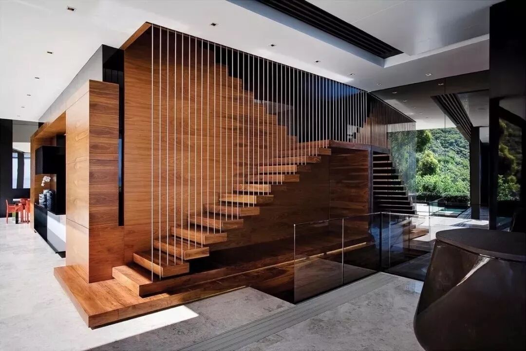 以木元素为主的直梯,更具有自然感,其天然独特的纹理、柔和的色泽,能让人静下心来,体验家的美好。