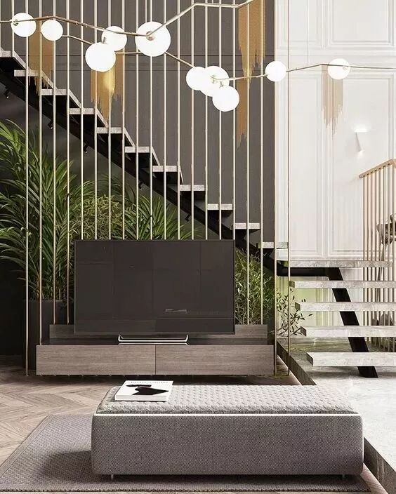以金属元素为主的直梯,则更有现代感和高级质感,而金属的色调更是让整个空间充满着低调的奢华。