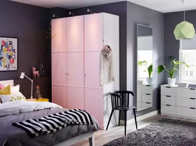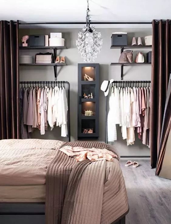 对女孩子来说卧室里最想要的大概就是一个可以挂挂挂的衣帽间了!把衣服全部挂起来大概就是女生们最大的梦想之一了。整整齐齐的裙子裤子、分门别类的包包鞋子再加上各种挂饰,一个诺大的全身镜,好了,简直就是完美!