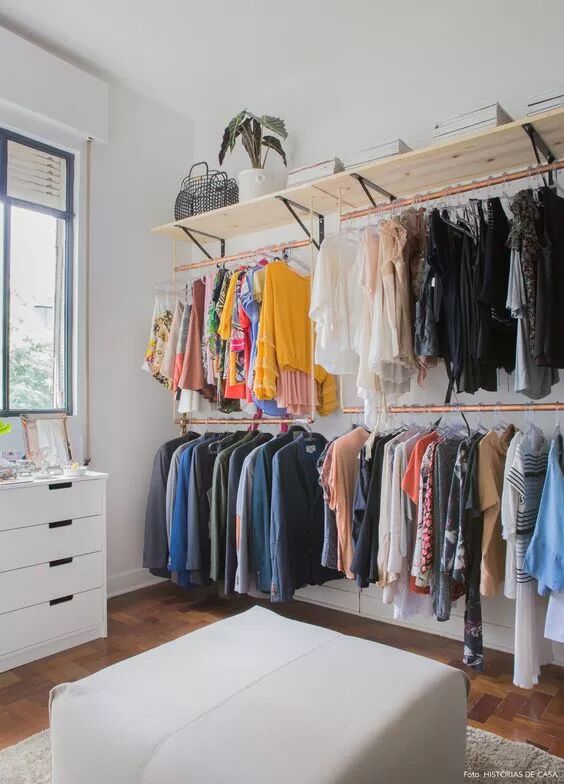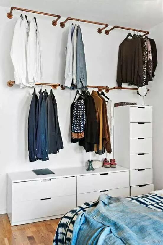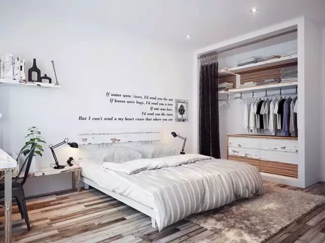 比起之前的简便式衣柜,那么开放式衣柜则更为随便简单,想做那就做哪,也无需套个外壳,流动性强,长什么样全看主人心情,容量也还Ok,毕竟只要你想扩大就可以扩大。比较明显的缺点就是防尘性差,走来走去,房间的灰尘全落衣服上了,不过颜值也是在线的!文青们的爱~