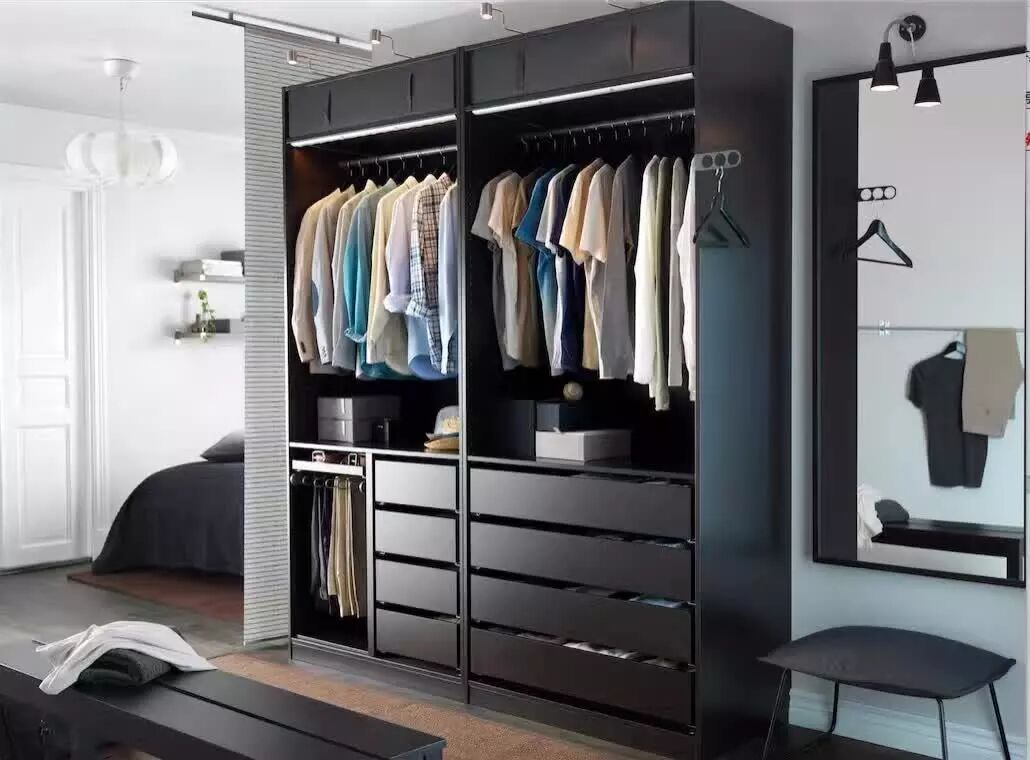 独立式衣柜大概是最常见的衣柜选择了,款式多样化,移动性强,防尘效果比较好,应该是经常要搬家童鞋的首选了~对于独立式的衣柜建议选择空格较大,自由发挥的空间充足,功能较多(例如带镜子)的类型。
