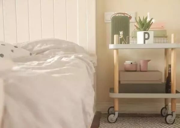 床放好了,旁边不摆放个床头柜,总感觉少了点什么,而且像手机、台灯这些物件找不到自己的容身之地了,把手机放枕头下吧,担心辐射太大,放到其他地方吧,又太远使用起来不方便,想来想去,还是要有床头柜,但是卧室太小放不下床头柜该怎么办呢?