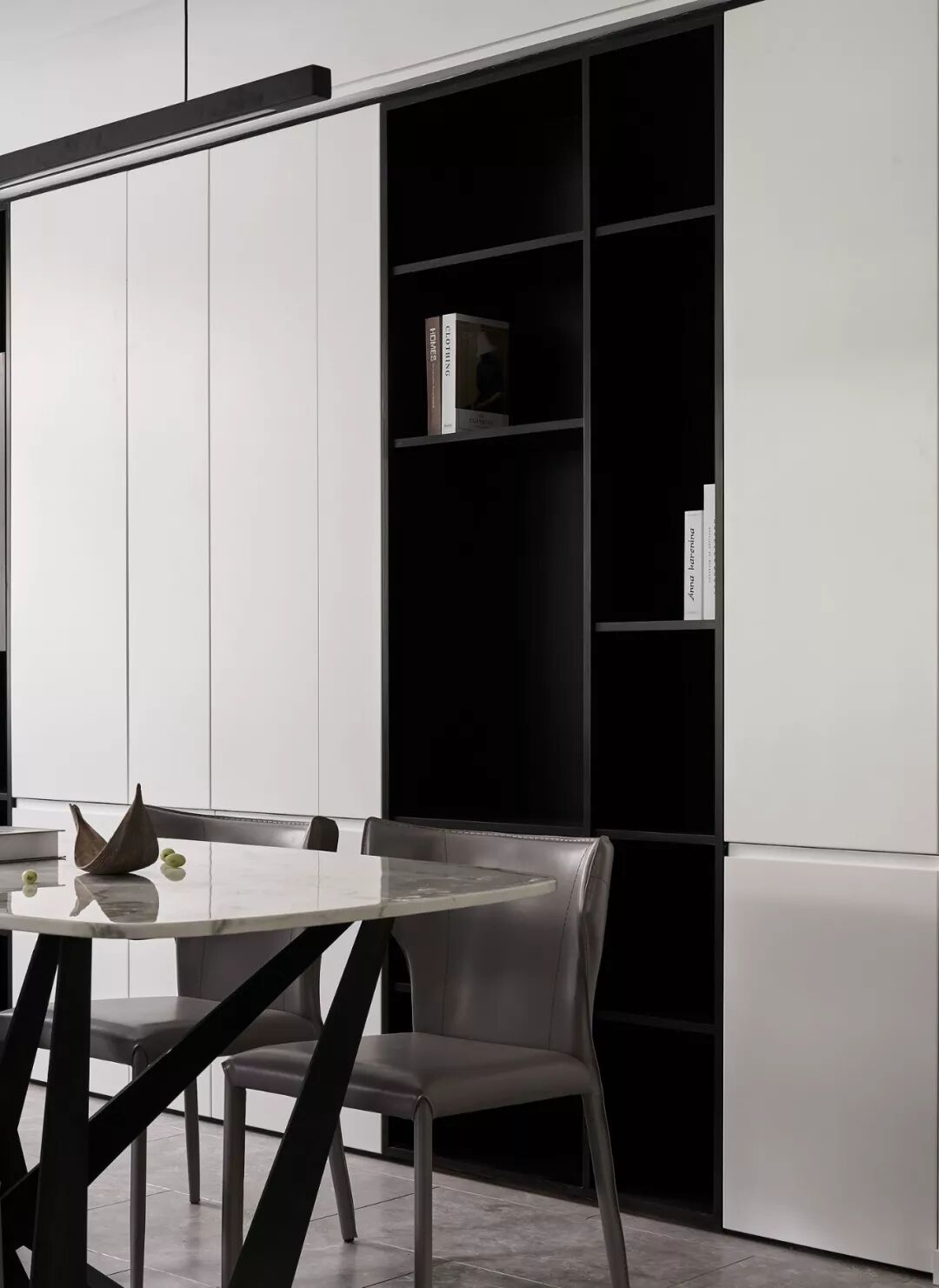 而柜体设计既是展示、储物,也是一家人记忆的存放区