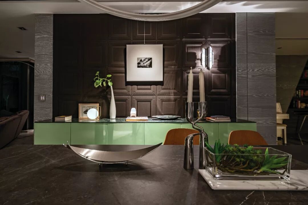 家具大多来自主人的个人收藏,自然随性地错置开来,确保每个区域都有很好的对话关系,人与人之间也能很好的互动,营造出更亲密的家庭氛围,提升每个家庭成员的住家体验。