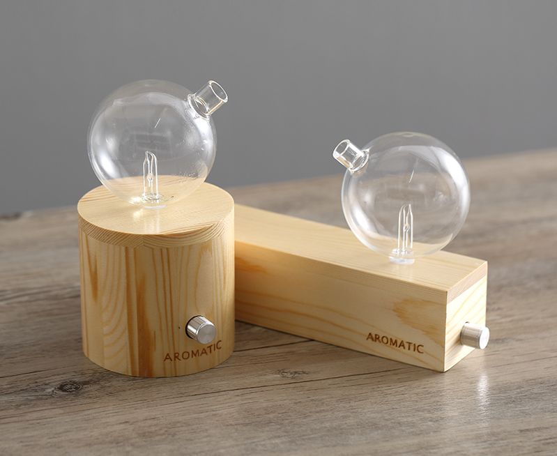 看腻了千变一律的香薰机造型,这款手工吹制玻璃的香薰机定能让你眼前一亮。原木色的底座搭配化学实验瓶造型的手工吹制玻璃,有一种厚重与轻盈、经典与现代融合的艺术美感,不管放在房间的哪个角落,都是不容忽视的点睛之笔。如果不喜欢有燃烧的香薰蜡烛的话,这种冷喷式的负离子香薰机就是理想的选择,在安静的香气中助你一夜好眠。