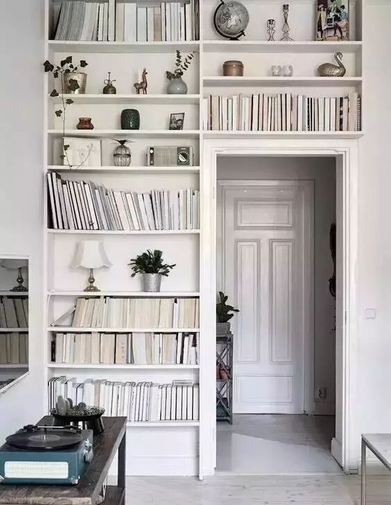 如果你是个买书如山倒的文艺青年,还可以在墙上做内置收纳柜,打造一个Home Library,绝对惊艳。
