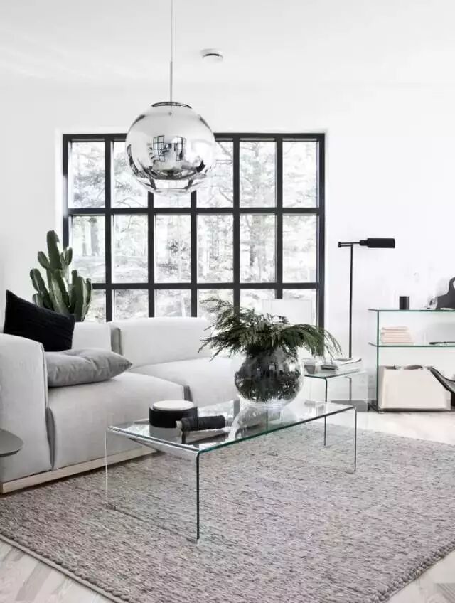 最好选择能够增加空间通透性的家具,材质大多是透明、反射、高抛光质感的;造型以简约小细腿儿为主;颜色倾向于高明度的亮色系。