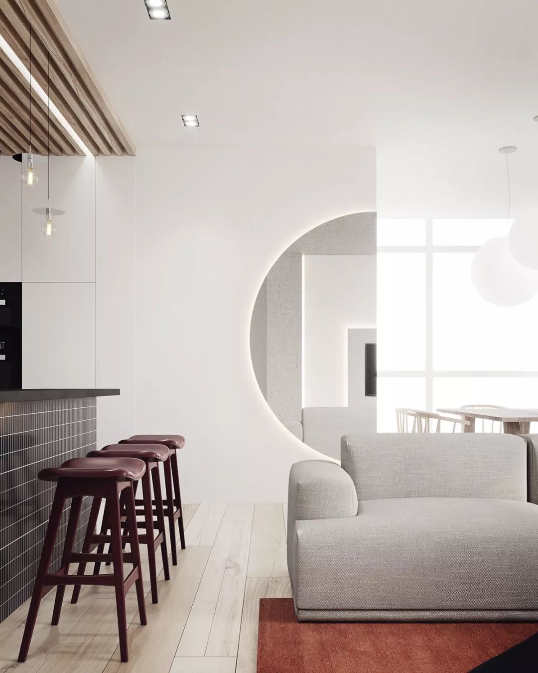 这些都能增强感官上的延展性,达到室内空间“宽敞明亮”的效果。