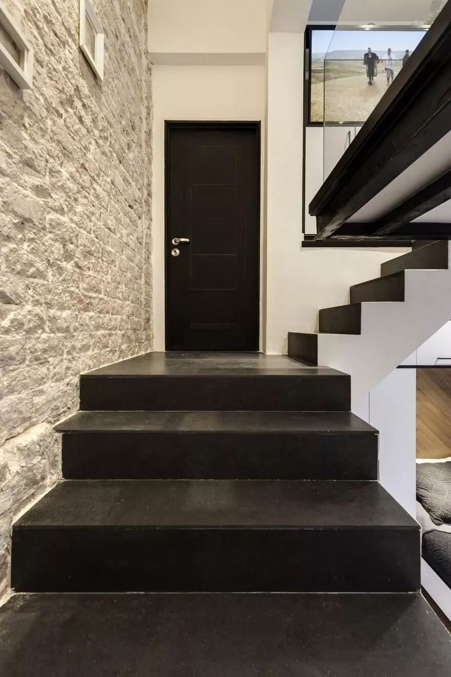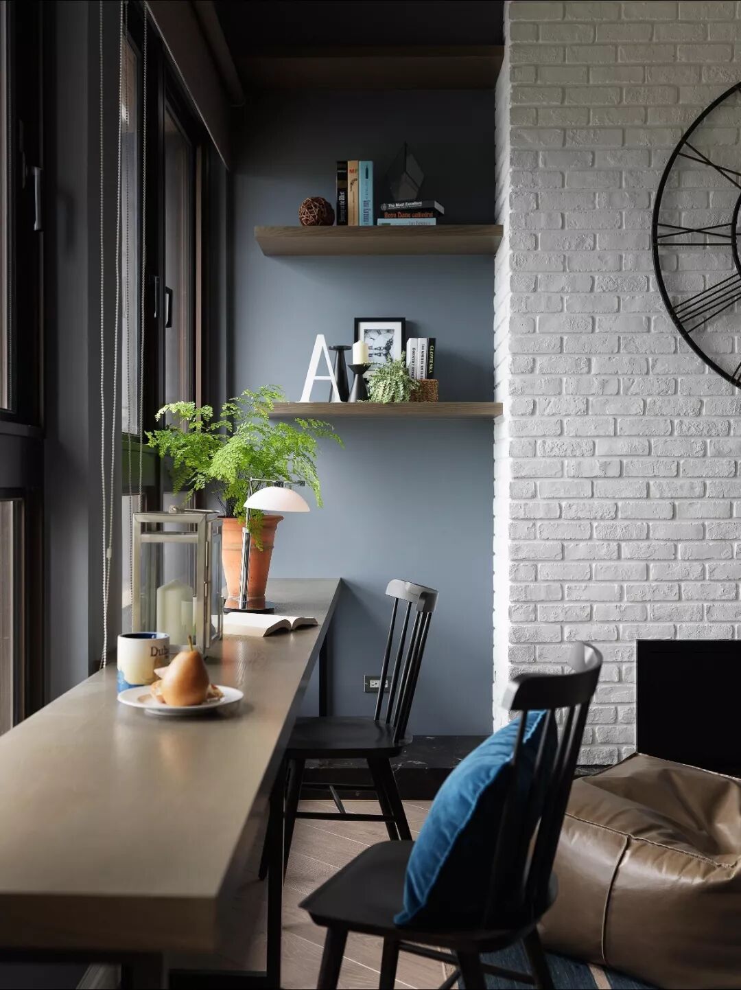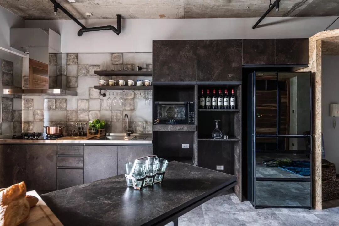 黑色的“裸砖墙”,既能完美融入深色系的室内环境,打造十足酷感,又可与整体白色、浅色的场所作对比,制造居室的焦点,扣人心弦。