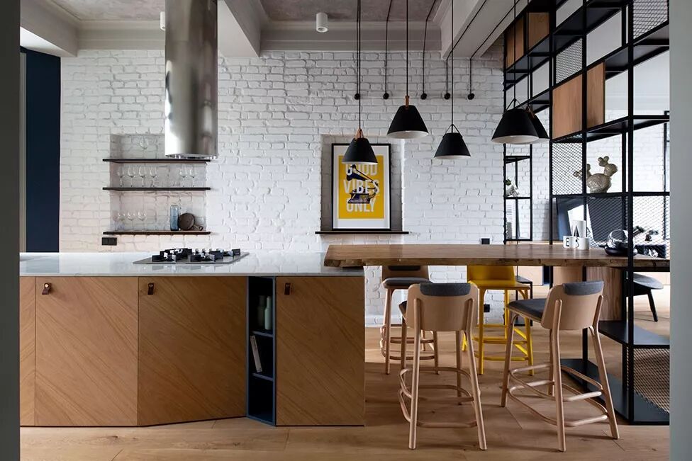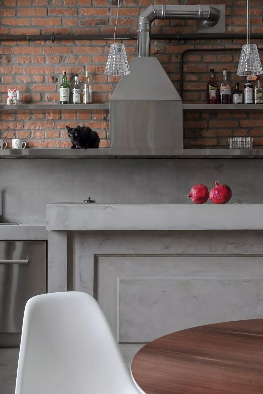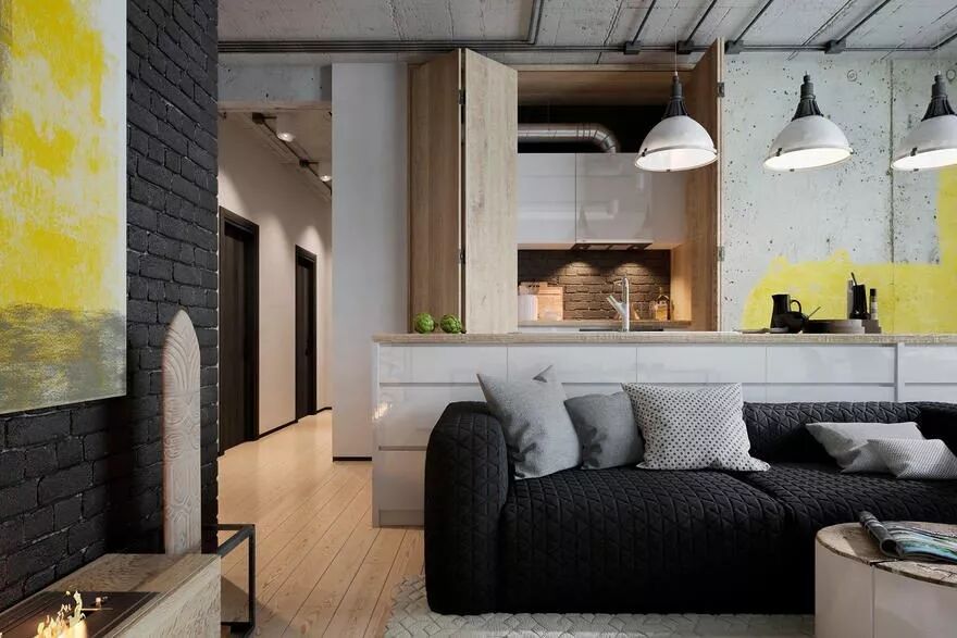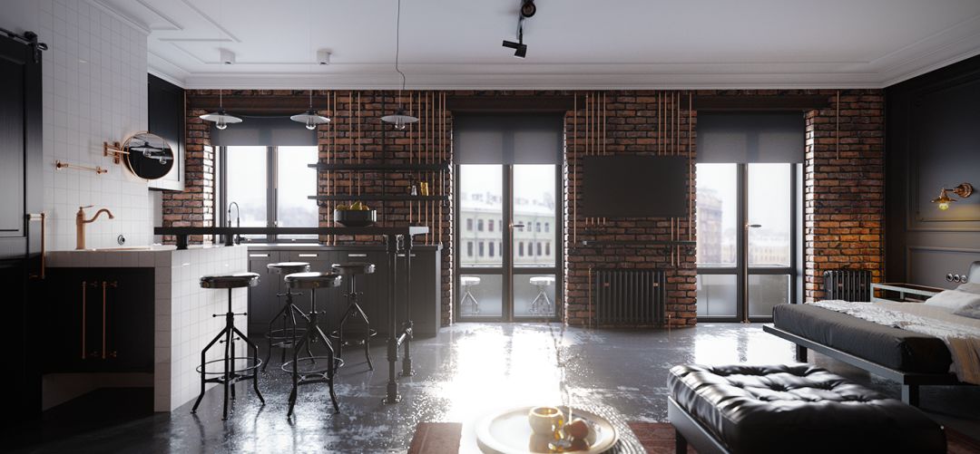 黑与灰一直是热门家居色,引申在“裸砖墙”上,同样能够表达足够的时尚感。