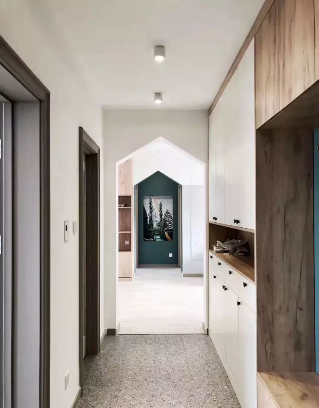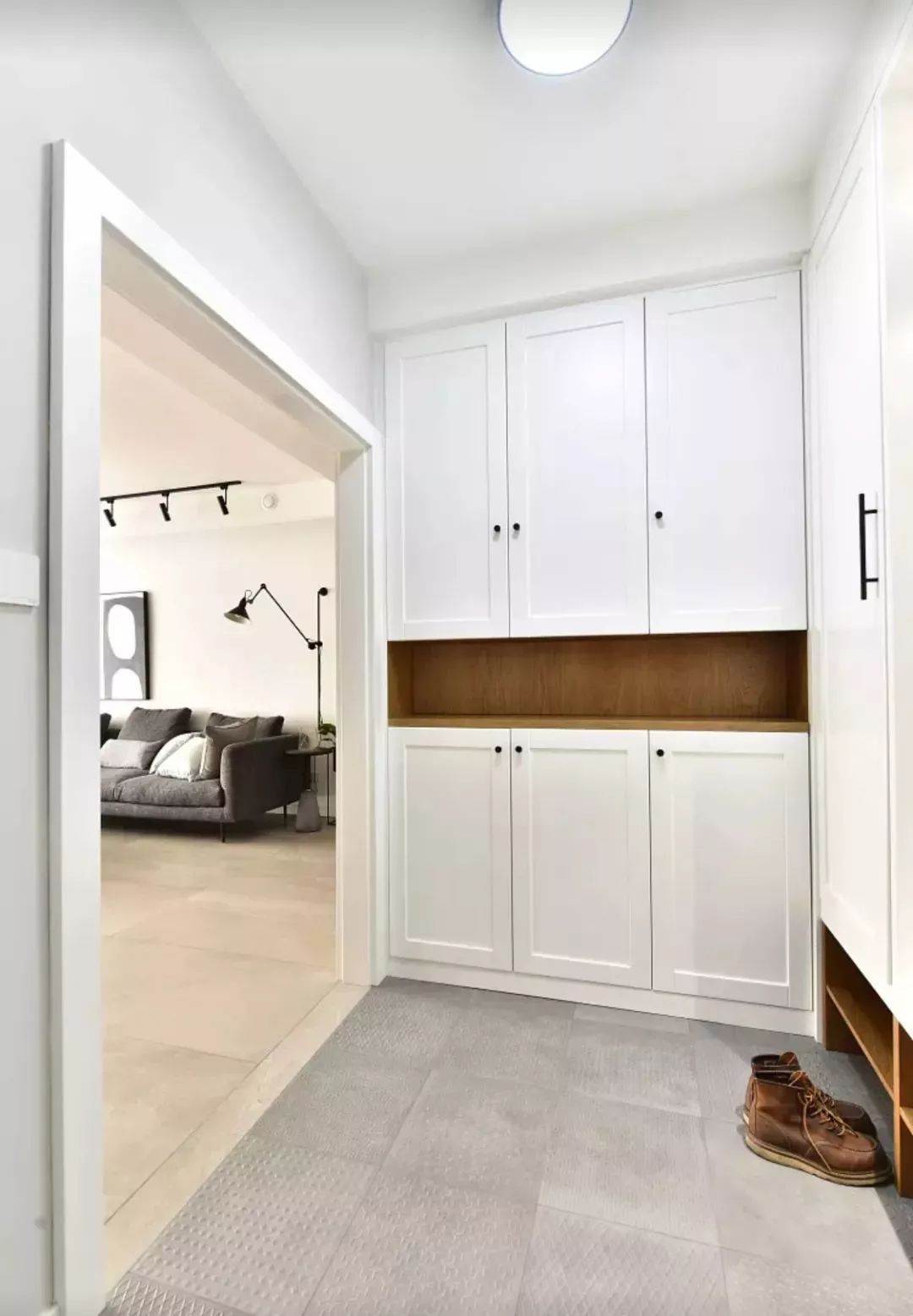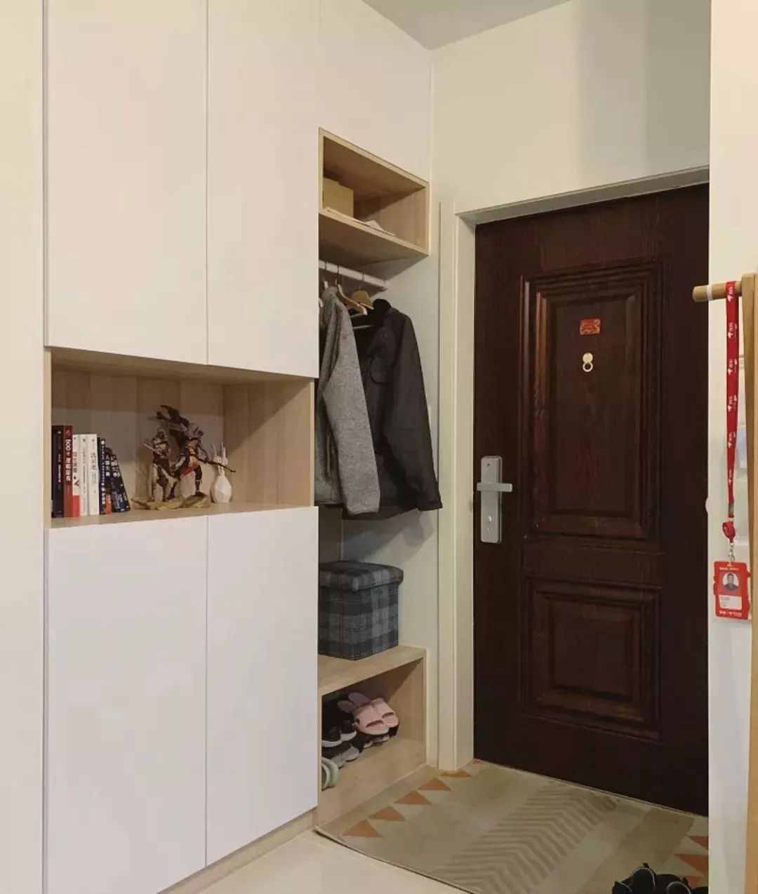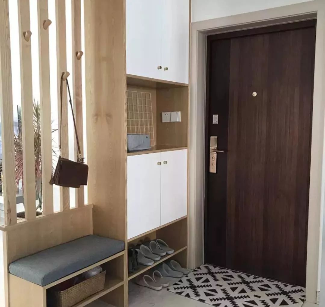 相比纯白色或木色的鞋柜,这样搭配的设计是不是感觉好看多了?