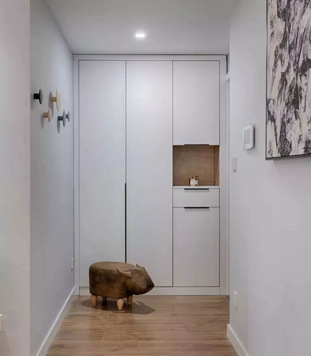鞋柜一般是安装在入户玄关位置,这里比较靠近大门,是每次回家进入的第一个空间,所以装扮一个美观优雅的玄关,可以让回家的心情更加舒畅轻松。