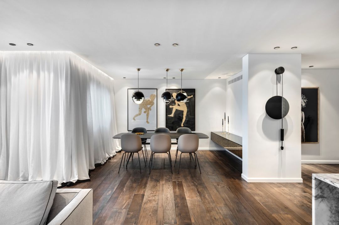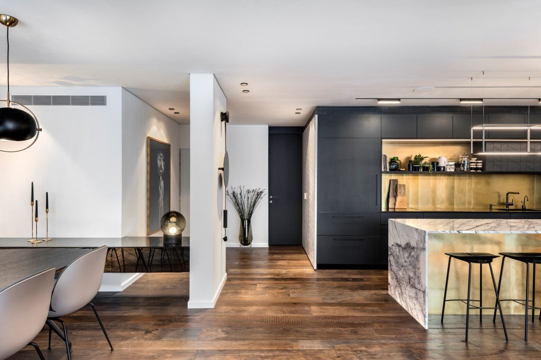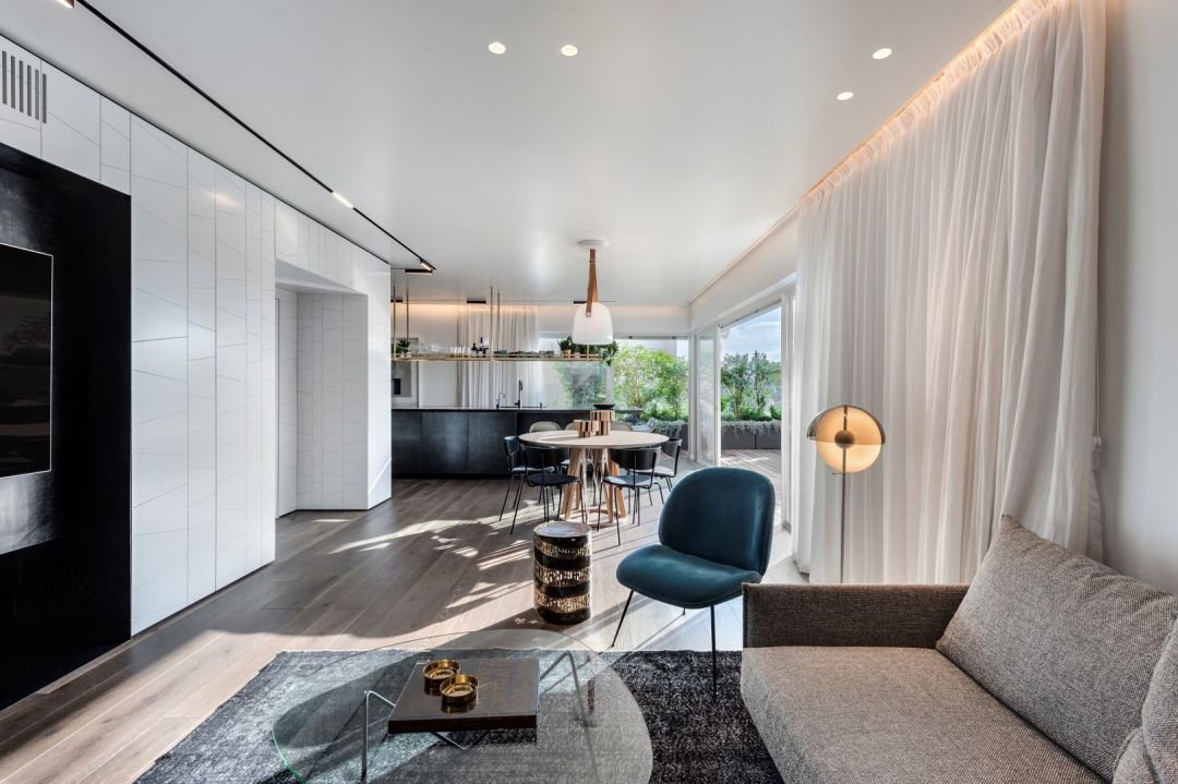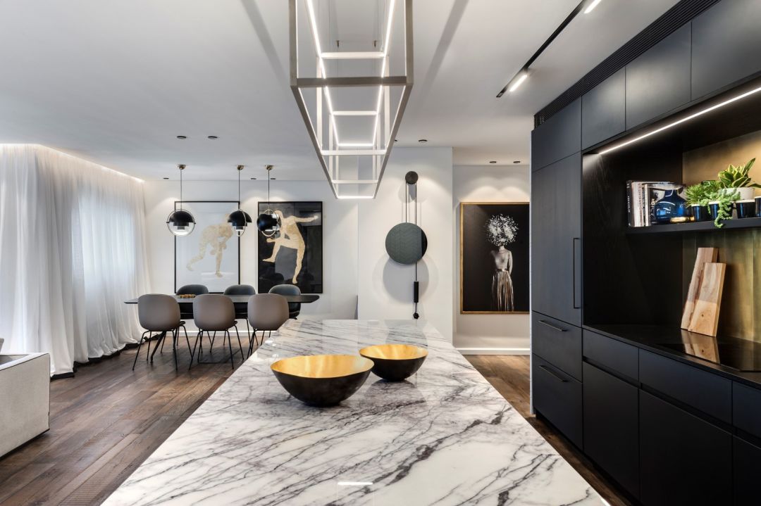 在简约的空间里,设计师通过材质、色彩的运用和软装的搭配将轻奢风打造得淋漓尽致。同时巧妙运用玻璃、瓷砖、金属等材料来拓宽视觉感及表现光影的和谐,创造出直撩心底的优雅魔力,让时尚、轻奢成为这个空间的一大亮点,看看以色列的轻奢风案例。