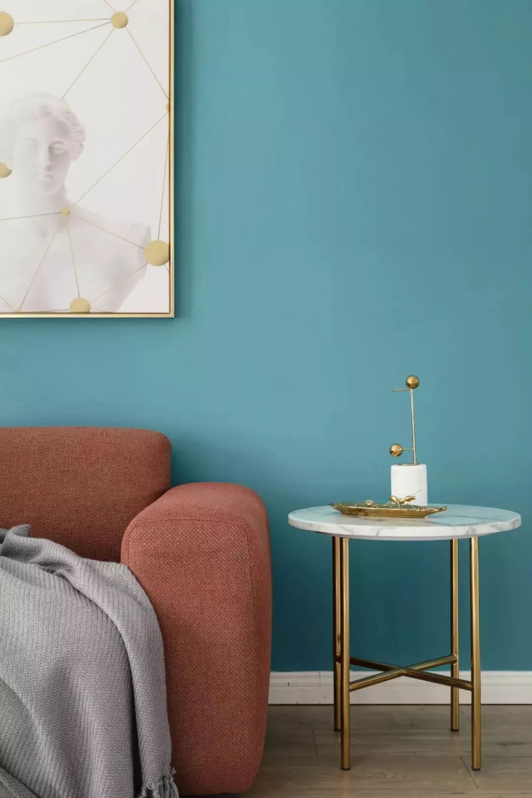 对于小户型的家庭来说,客厅本来就不大,放了一排沙发后空间就立马局促起来,如果觉得摆茶几影响空间的通透感,不如试试轻便灵活的小边几。