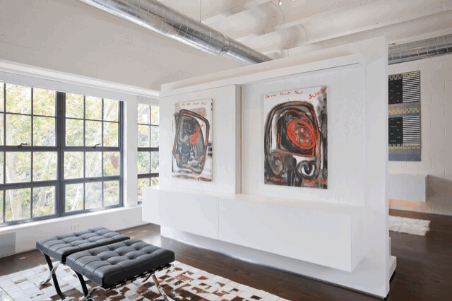▲收起投影幕布,放置电视柜的那面墙可以用挂画等精心装饰一番。