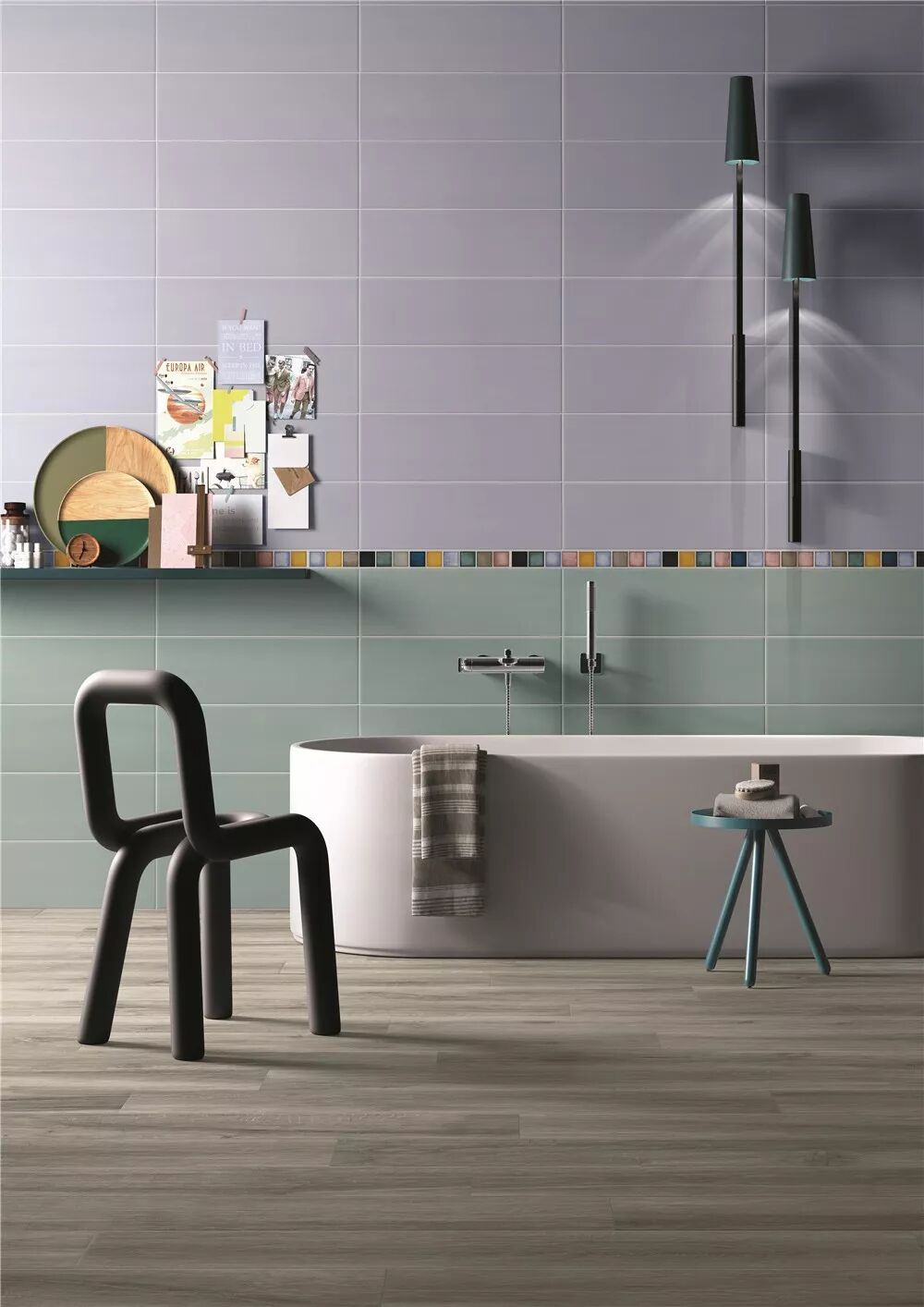 这种铺贴方式,不仅可以清晰地进行区域划分,还能渲染出独特的艺术氛围,带来强烈的视觉冲击力。