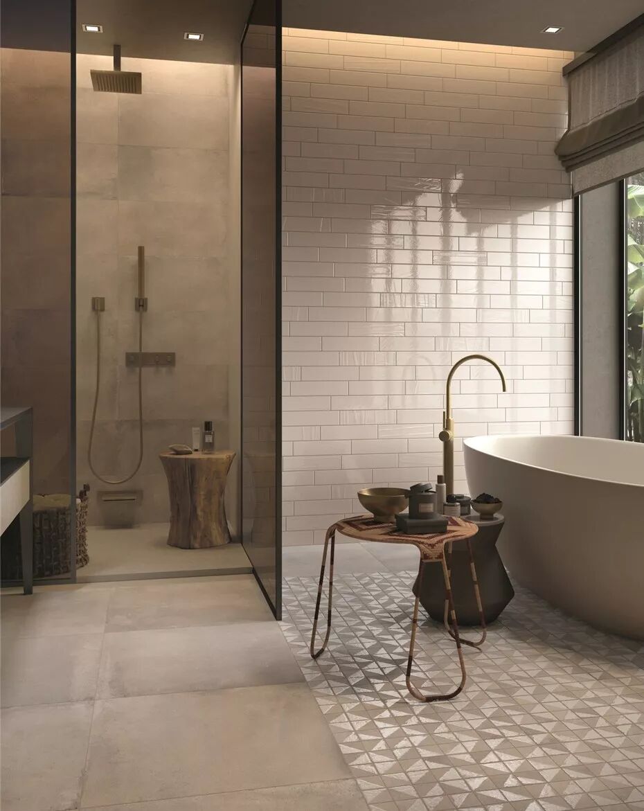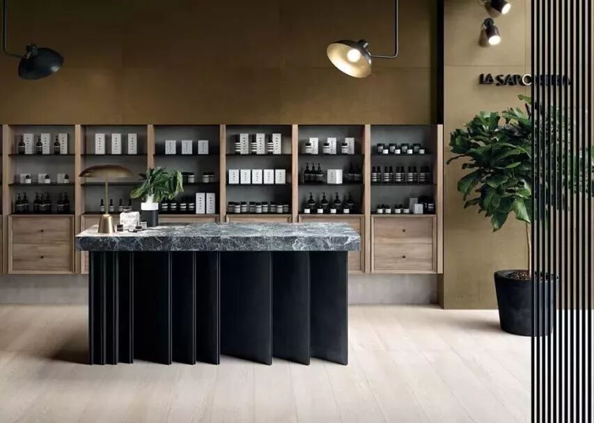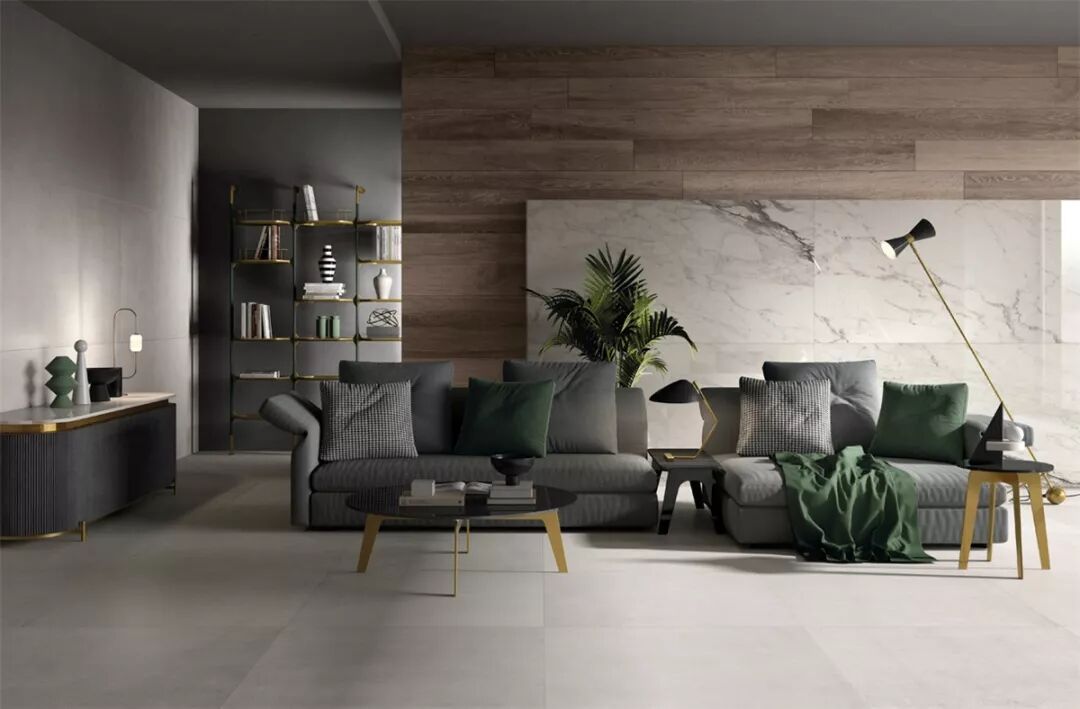 从建筑水泥地面、水磨石,再到金、银、铜等贵金属材料。瓷砖工艺一直在致力于复活更多的原始材料,工业风是当下的流行趋势,而复活和创新最朴实的基础建材,是瓷砖艺术表现的至高境界。
