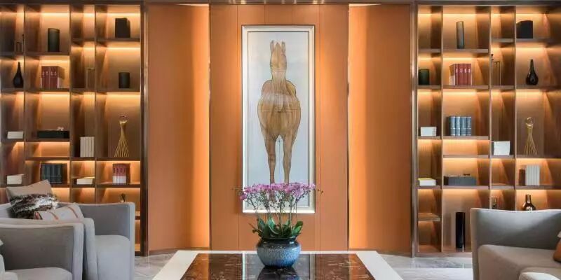 一层主要为沙盘与洽谈区和专属VIP洽谈室;设计师使用爱马仕设计风格。延续现代、纯粹的设计语言,目光所及之处,皆至精至美、无可挑剔,极致美感一触即发。