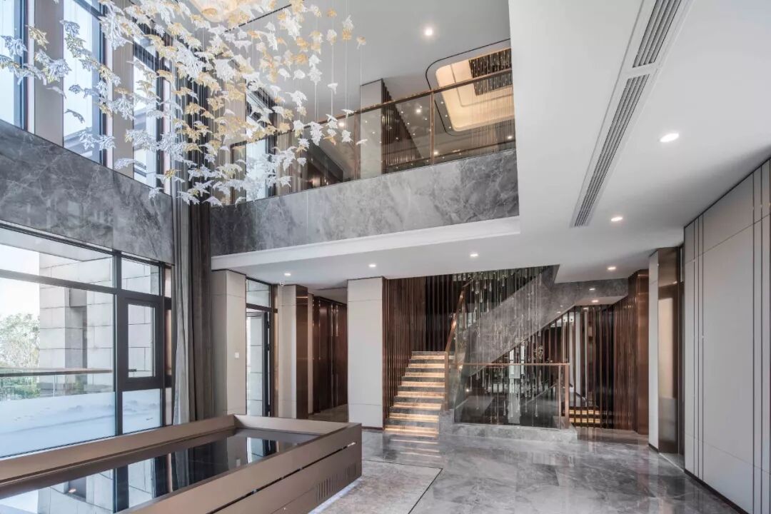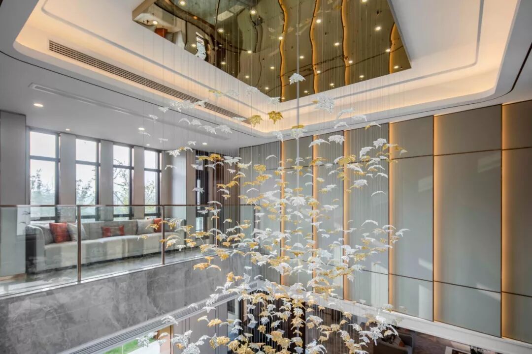 在艺术表达上设计师巧擅取自然之形,以建空间之意。一层与二层处所做的挑空形式,巧妙地引景入室,结合现代之简约与自然之灵气,最大化地增加利润自然采光和通风。湖所承载的宁静和雅致,在文化艺术的历史演进中,是无可置换的重要一笔,设计师依湖而作,创造着璨斓似梦的诗性生活。