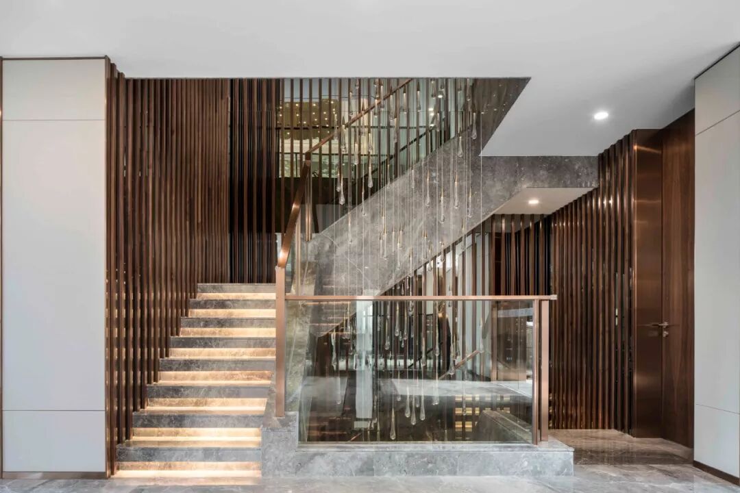 玻璃与金属打造的楼梯让空间利落贯通,干净流畅的线条传递着简约摩登美学,细节表现上仍然彰显着低调的奢华。行走其间,如漫步于艺术长廊,高雅之外兼济柔和之美。
