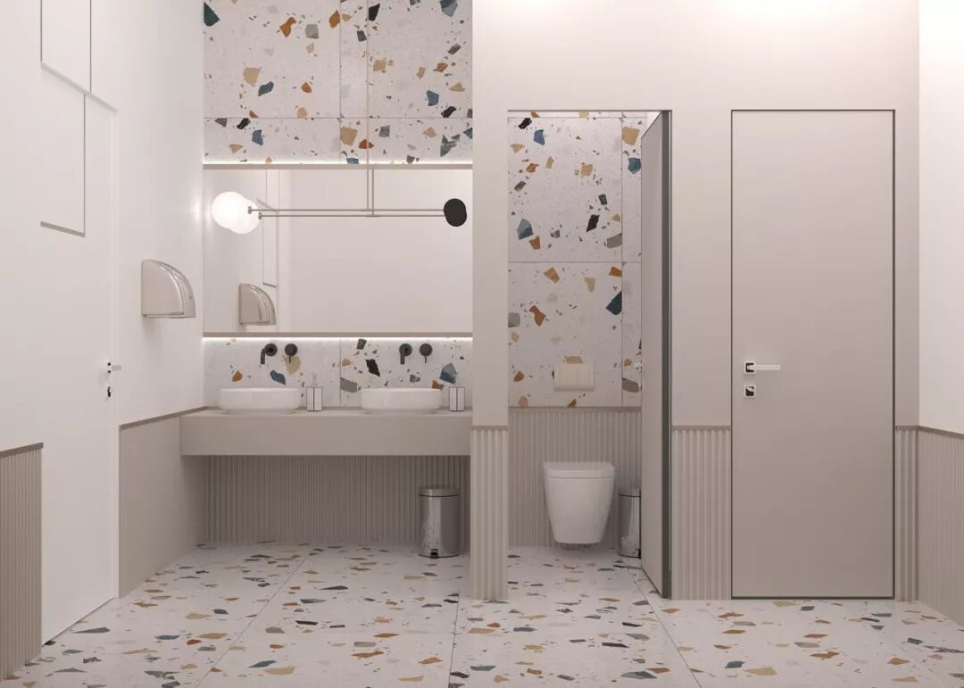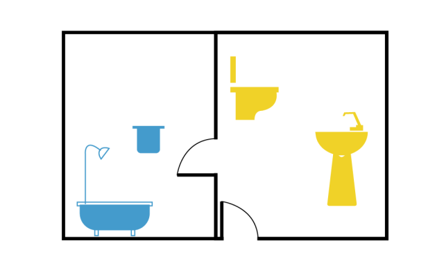 三式分离的卫生间占地面积大约为 4.5㎡~8㎡,除了能满足干湿分离要求,还能达到比较高的使用效率,适合两房一厅、三房一厅等容纳人数较多的户型。