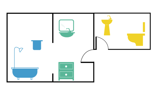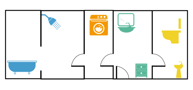 增加卫生间可用面积,洗澡同时,其他家庭成员可利用干区,洗漱、如厕、洗澡互不干扰。