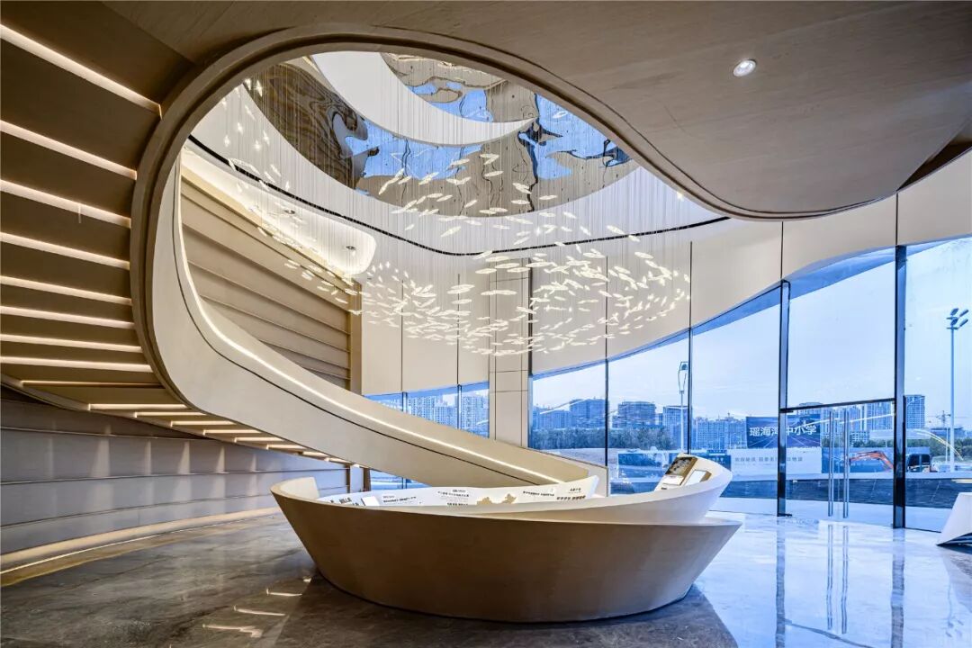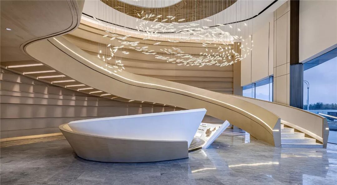 在室内空间的设计上,设计师将柔和流畅的线条结合,创造出一种极具律动美感的流线型空间。表现出空间的艺术超现代气息。室内空间设计通过简洁而流畅的形体和语言,演绎出现代自然的精髓精华。蜿蜒灵动的旋转楼梯赋予空间未来感,宛如一条绵延婉转的飘带,在视觉上呈现出恢弘的延续性,流动的美感提升了空间的格调。