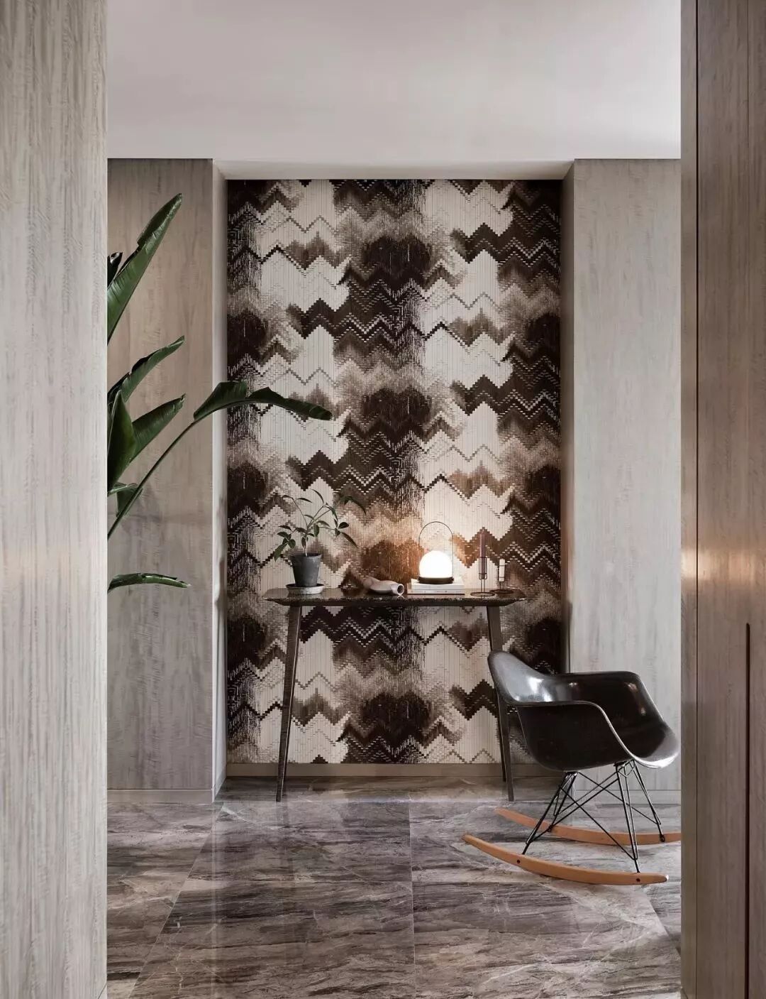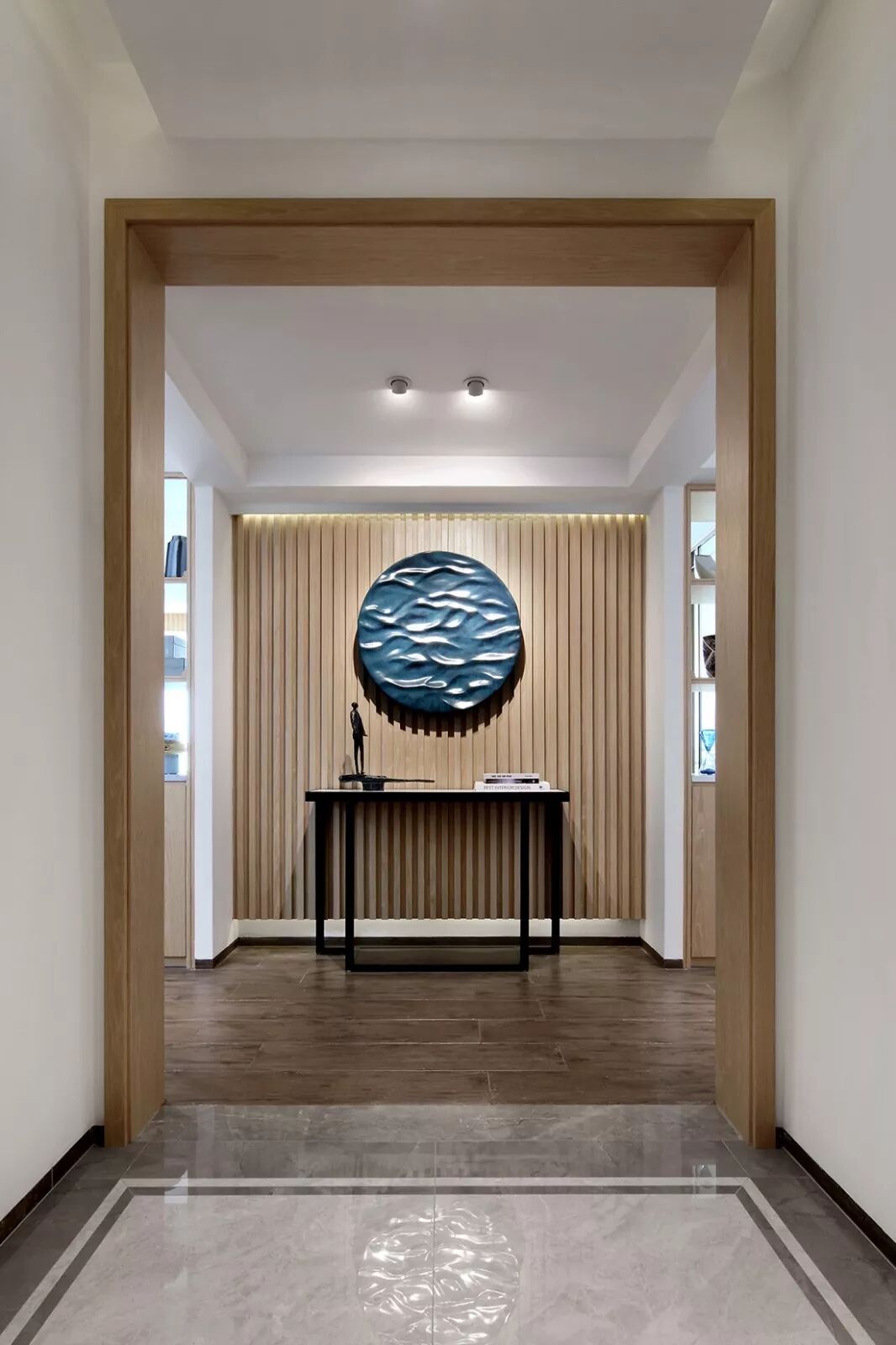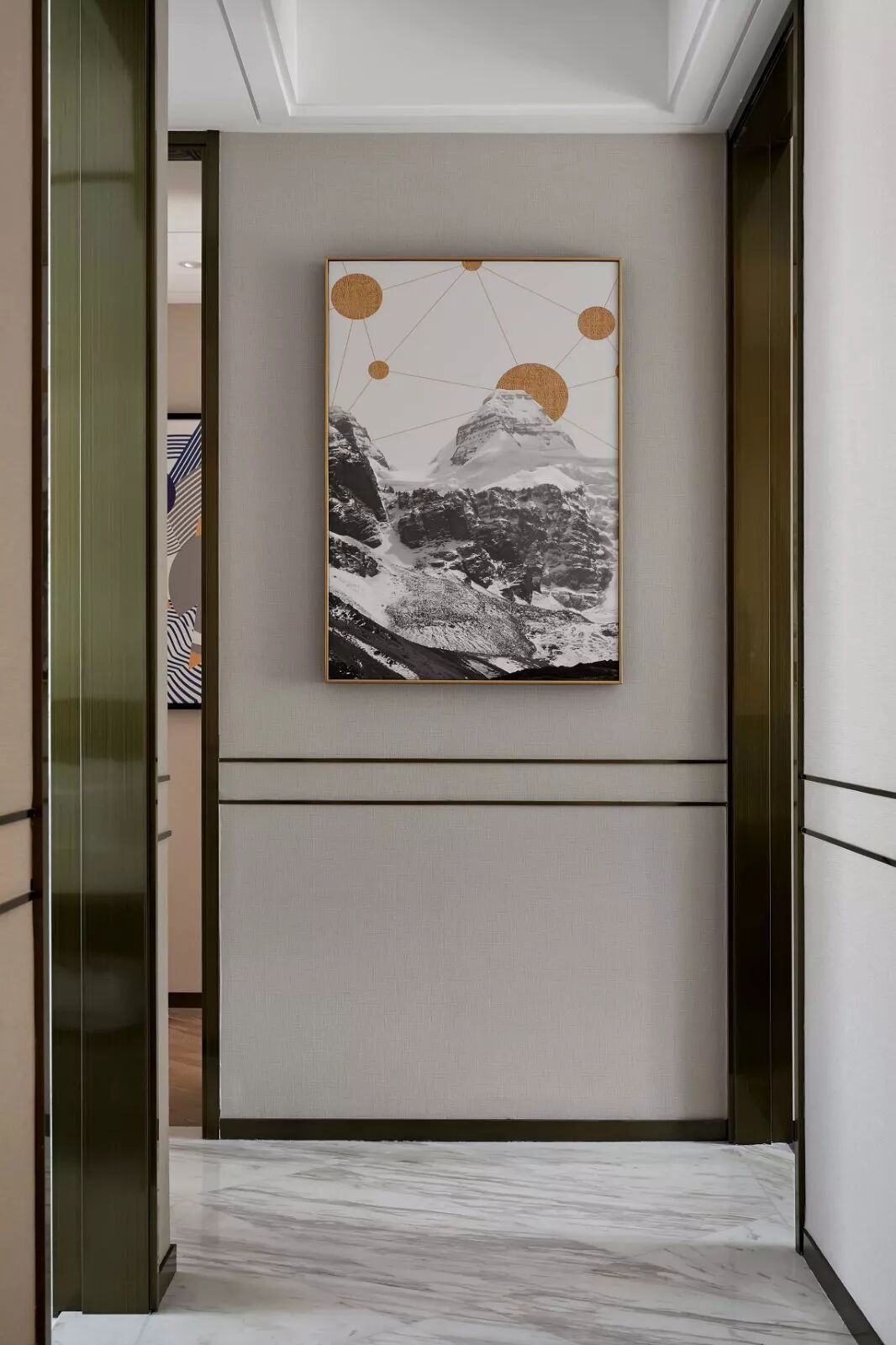 端景墙一般分为以下几类:入门玄关正对的墙体,狭长空间或过道尽头的墙体,以及客厅、书房、餐厅等较大空间有美化需求的墙面。